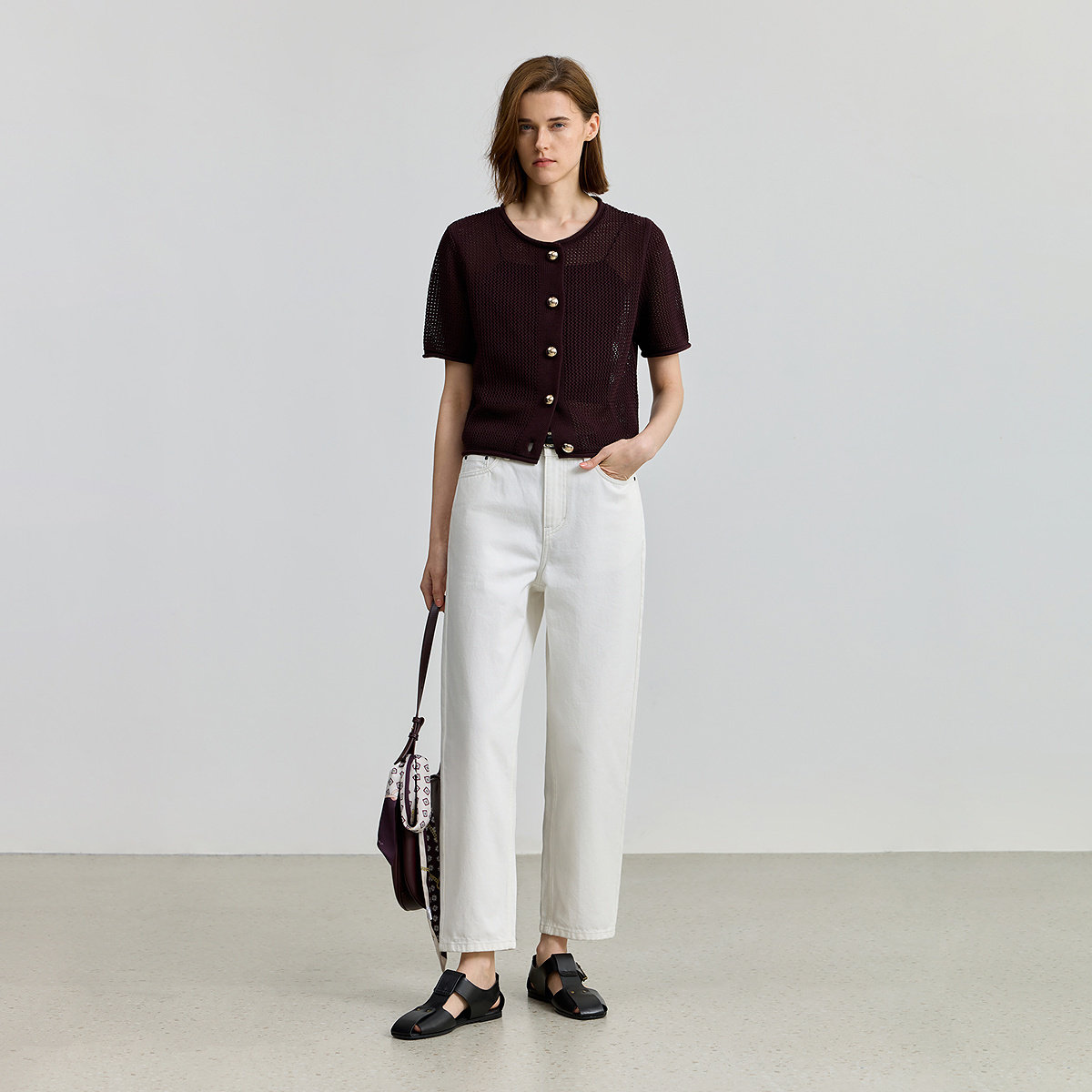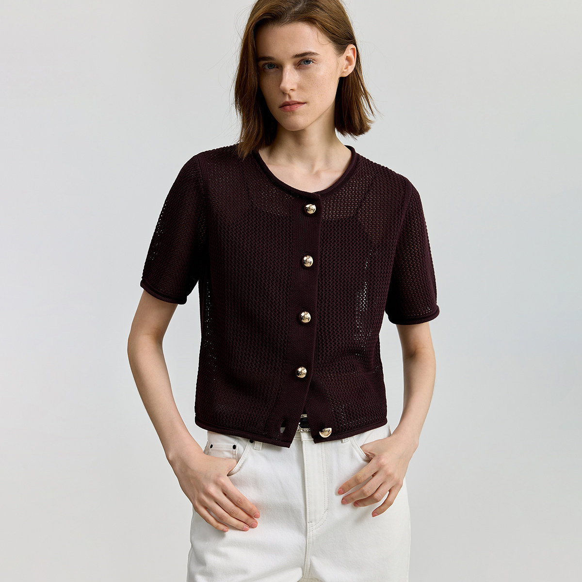 【商场同款】LILY2025新款女装全棉复古小香风休闲短袖针织开衫