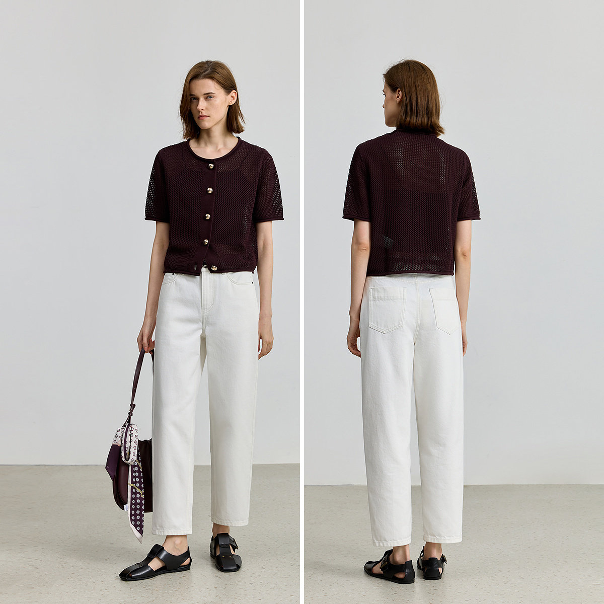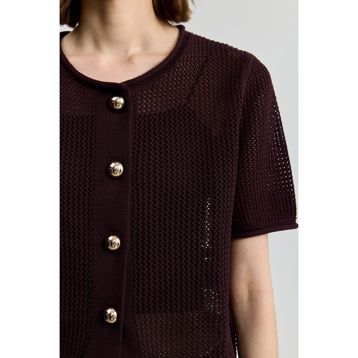 LILY小香风全棉短袖女装针织开衫
