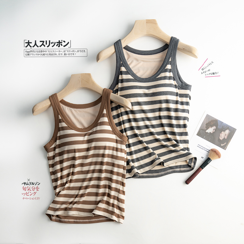 吊带背心女内搭夏季外穿条纹针织带胸垫文胸一体无袖修身打底上衣