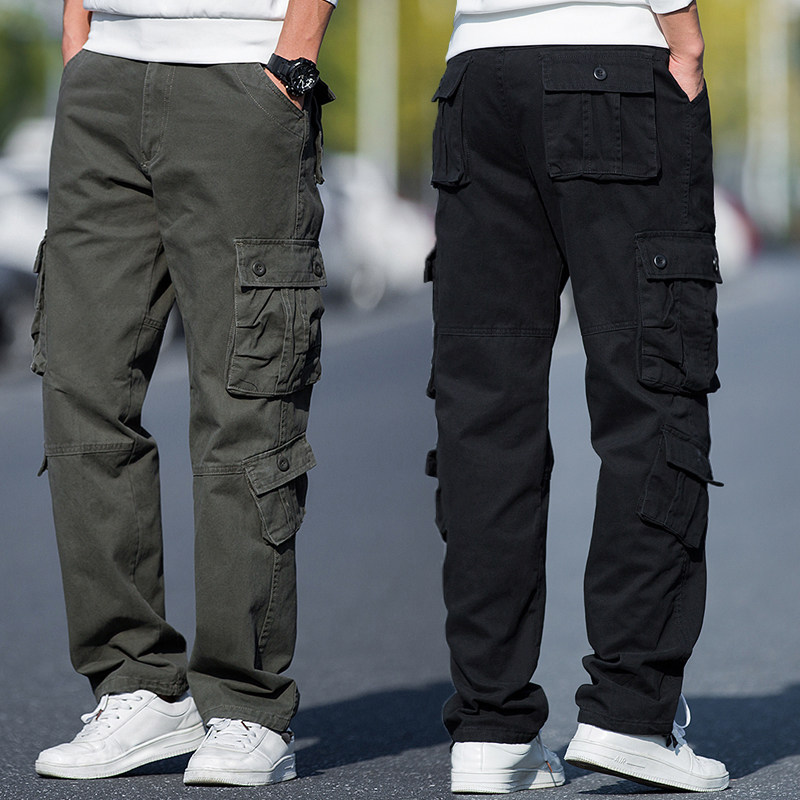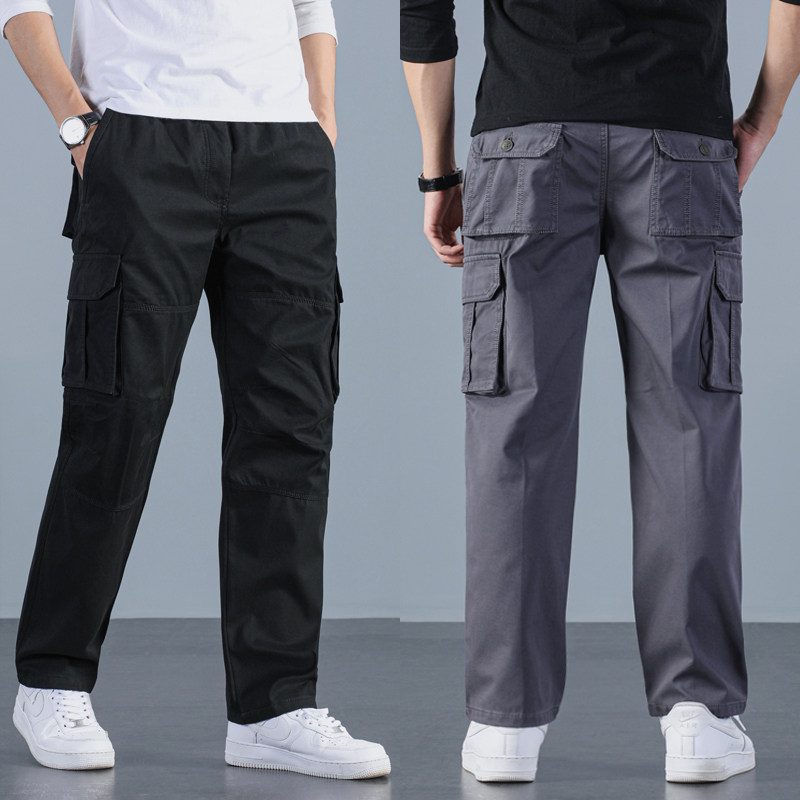 春秋工装裤男厚款男裤休闲裤宽松直筒长裤子中老年男士纯棉裤子男
