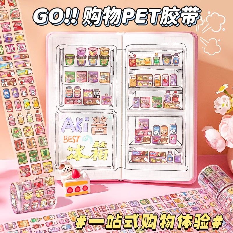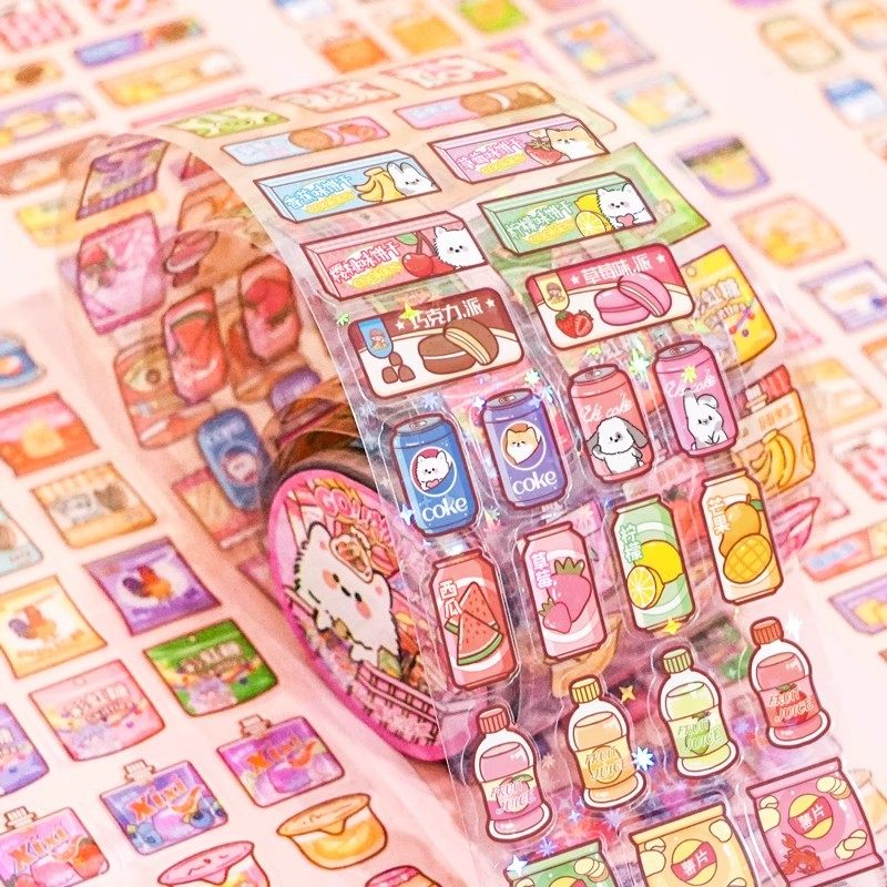 创意零食购物超市PET胶带模切素材镭射手账贴纸儿童装饰耳机杯子