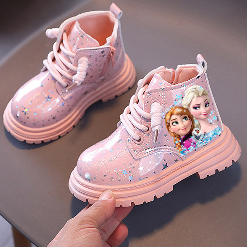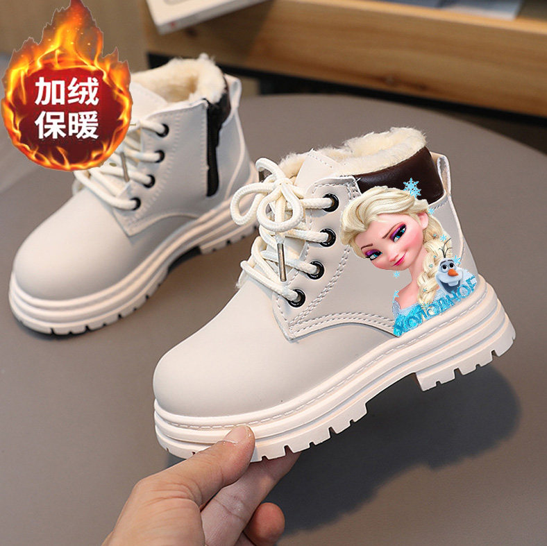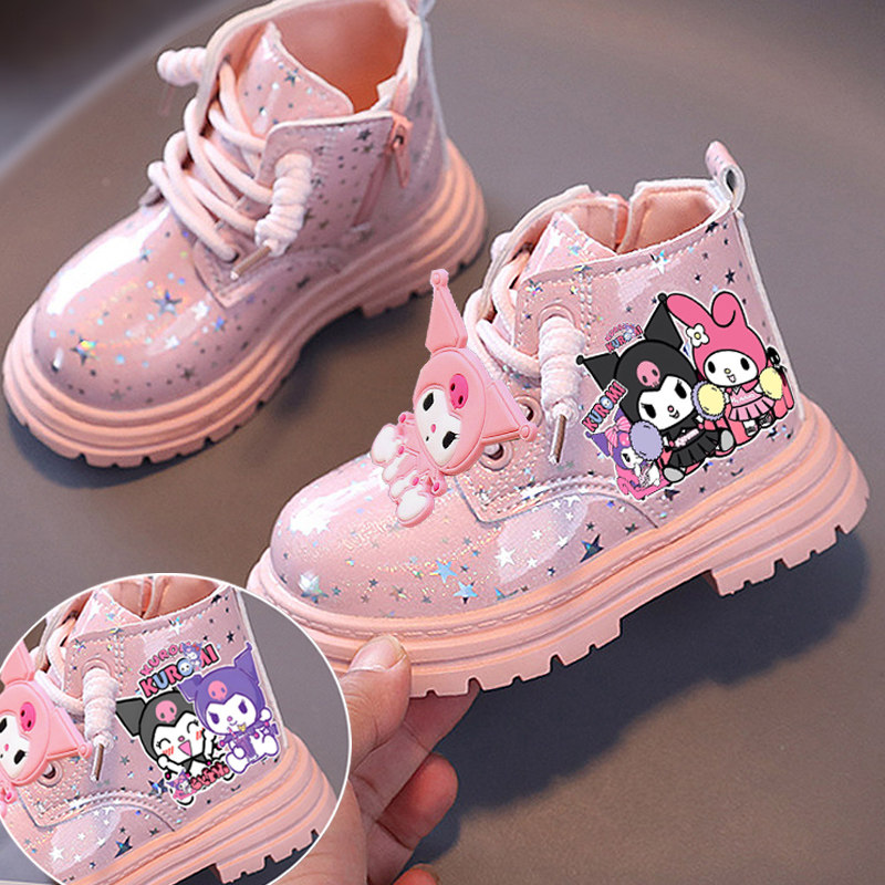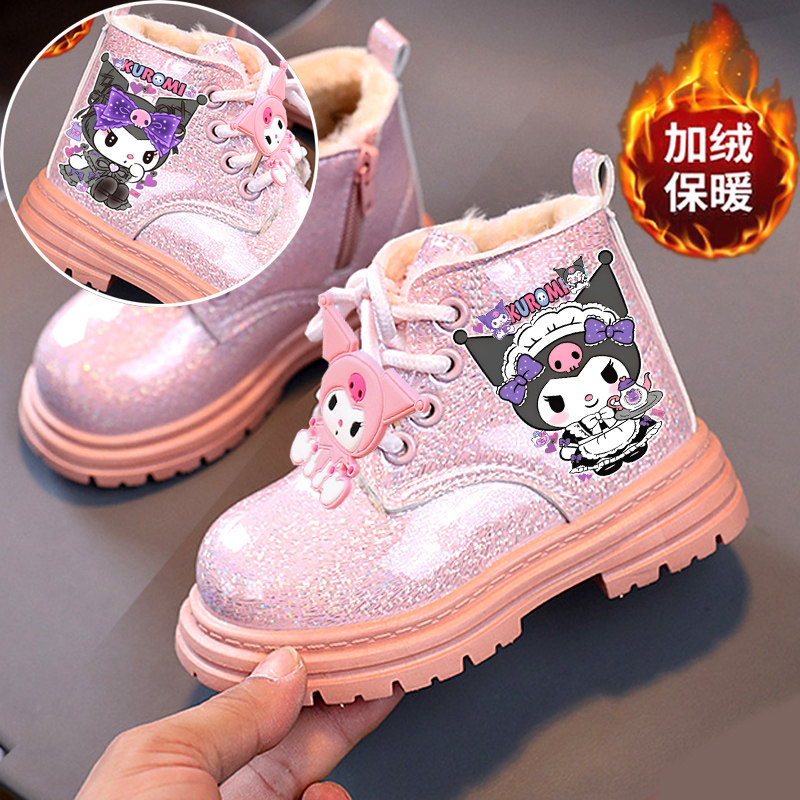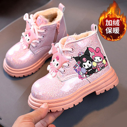 库洛米公主鞋女童鞋秋冬加绒学生洋气中筒马丁靴子防滑防水3岁6岁
