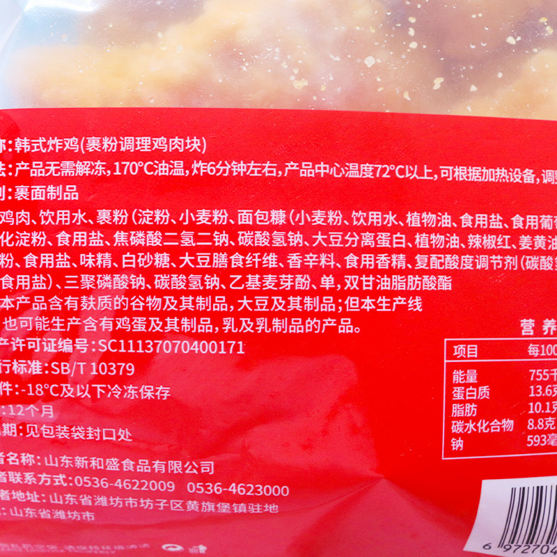 新和盛韩式炸鸡块1kg商用