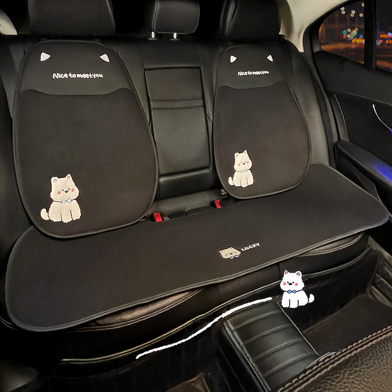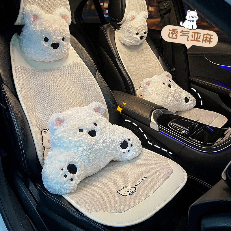 亚麻汽车坐垫四季通用透气车座垫2026新款卡通可爱西高地车载内饰
