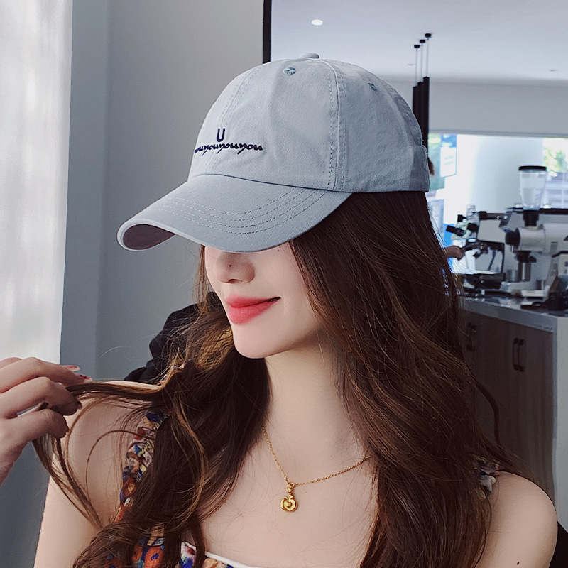 周给给 字母u蓝灰棒球帽夏季薄款鸭舌帽女韩版潮牌小众显脸小帽子