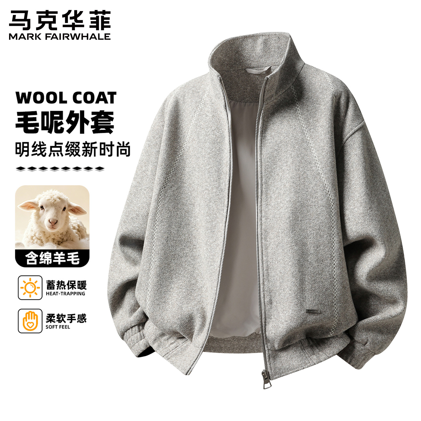 马克华菲高品质毛呢外套男2025秋冬新款立领加厚保暖短款夹克大衣
