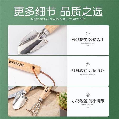 史丹利不锈钢小铲子花铲挖土耙子园艺工具松土赶海种菜花专用套装