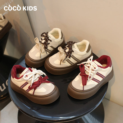 加绒女童板鞋儿童运动鞋2025冬季新款女孩德训鞋休闲跑步鞋二棉鞋
