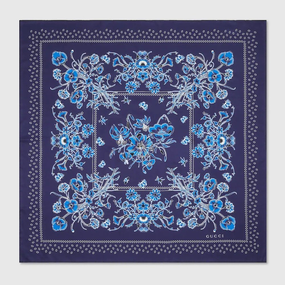 自营欧洲直邮Gucci/古驰 男士紫色棉纱花卉印花方巾头巾