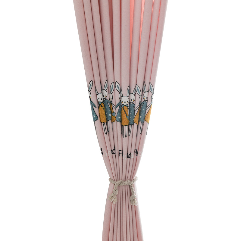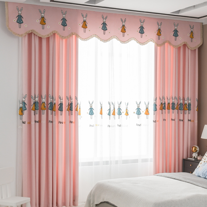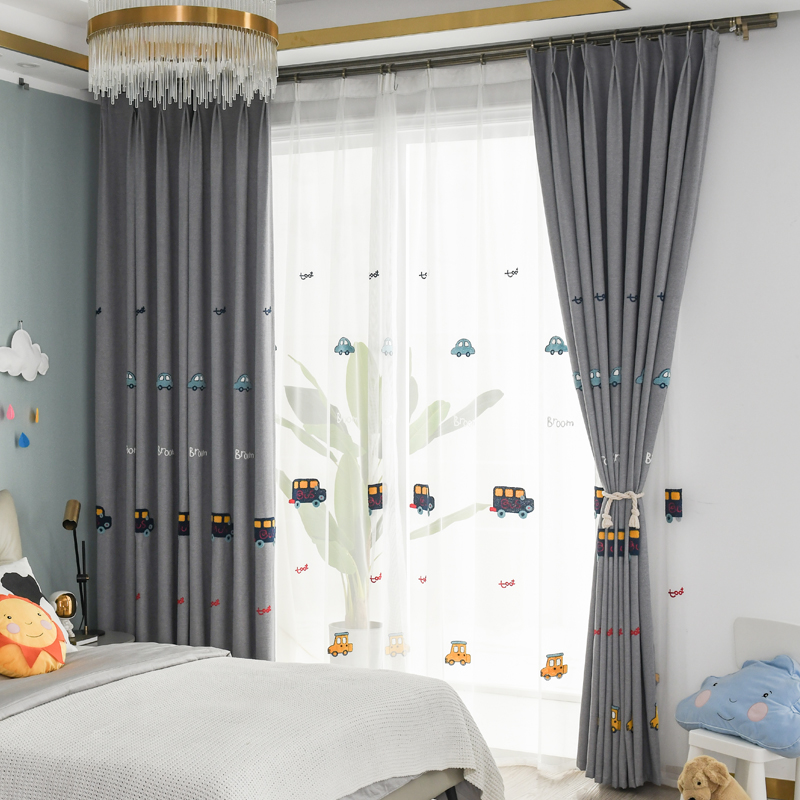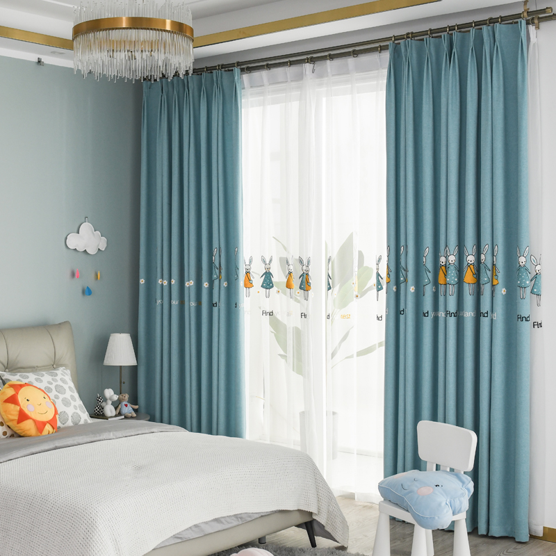 极速儿童房遮光绣花窗帘女孩公主风轻奢北欧男R孩卧室飘窗成品定