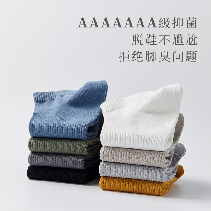 【10A抑菌】【网眼】男秋薄款防臭短袜新疆长绒棉黑浅口休闲船袜