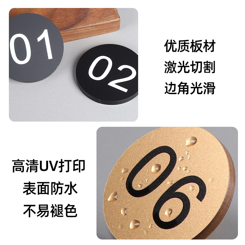 亚克力数字标识牌饭店餐桌号码牌公司办公桌座位号标志牌浴室宿舍衣橱柜门序号提示贴仓库车间设备编号牌定制