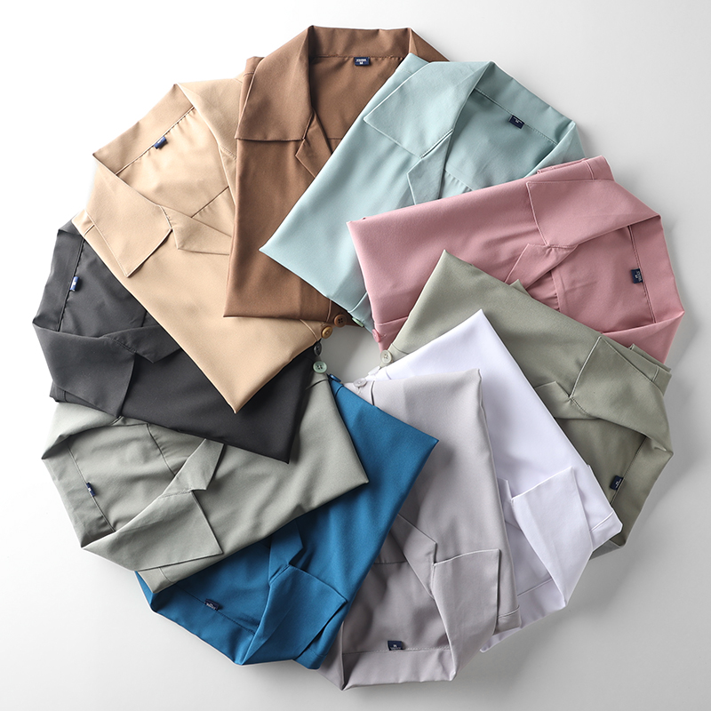 十色可选 帅气百搭 夏季男士古巴领短袖衬衫纯色休闲半袖衬衣