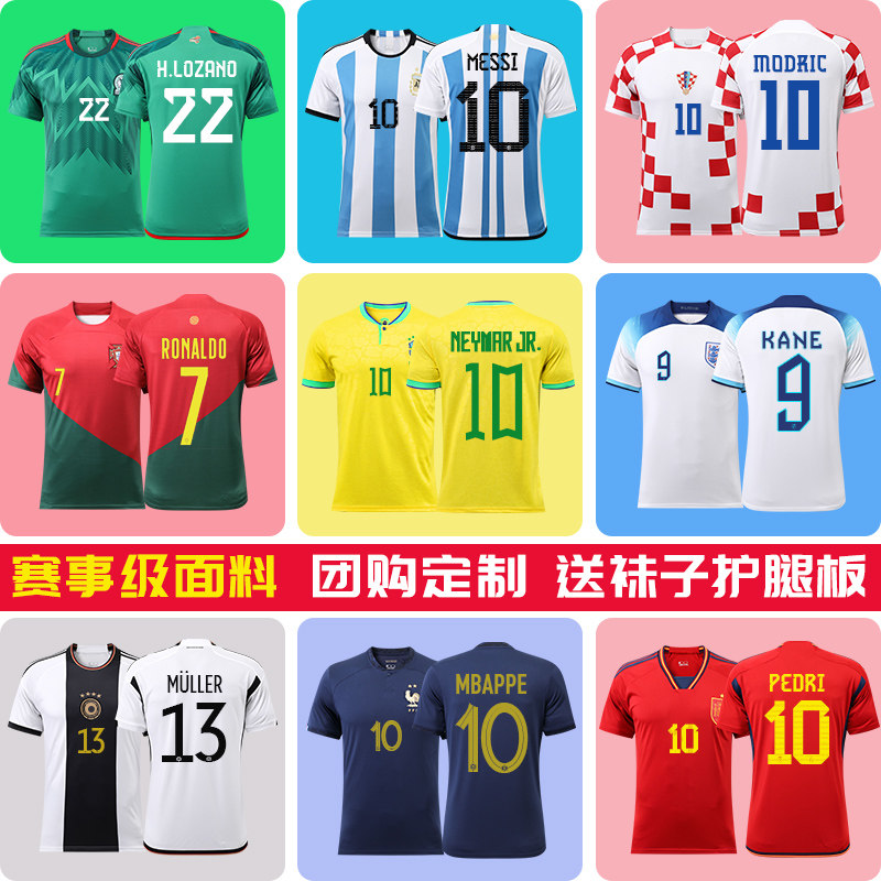 巴西队内马尔球衣10号葡萄牙C罗7号训练服阿根廷梅西足球服套装男