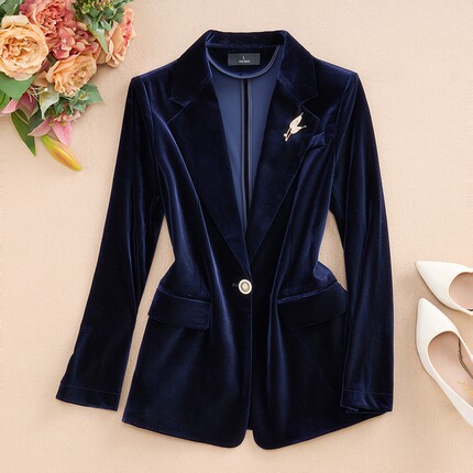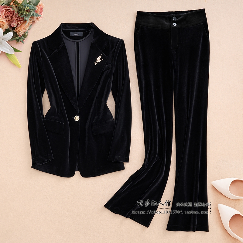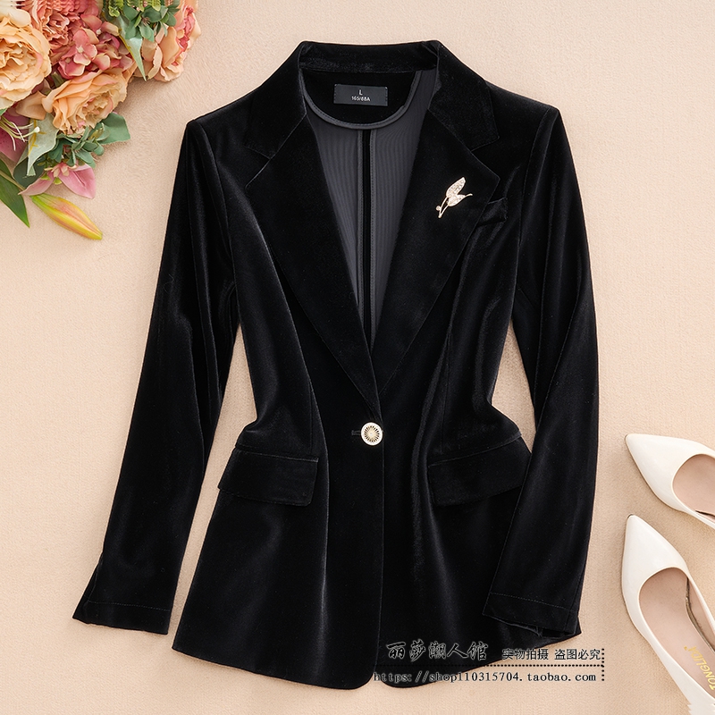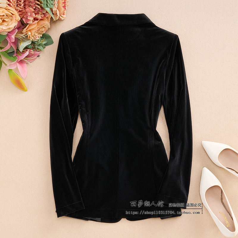 春秋短款金丝绒修身西服套装女潮