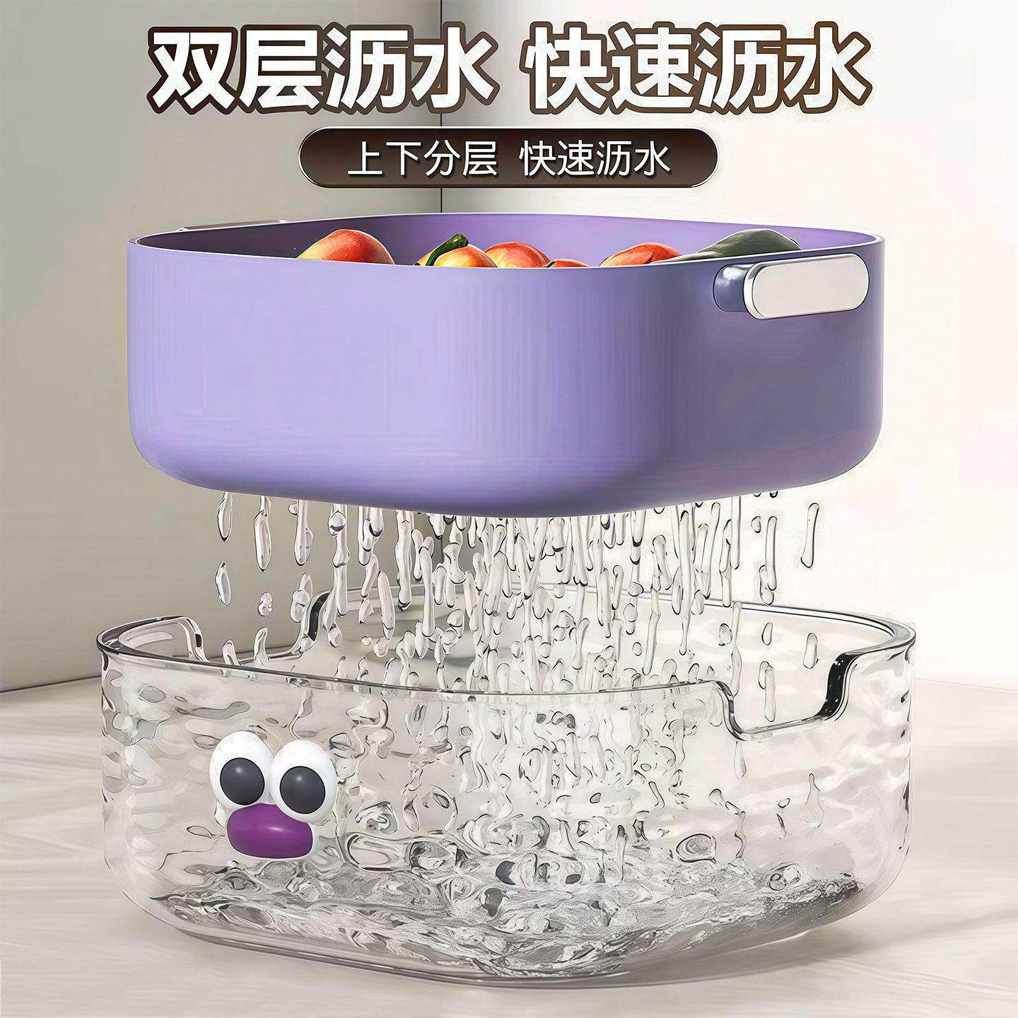 双层洗菜盆沥水篮家用可爱水果篮子清洗滤水二合一加厚果盘洗菜篮