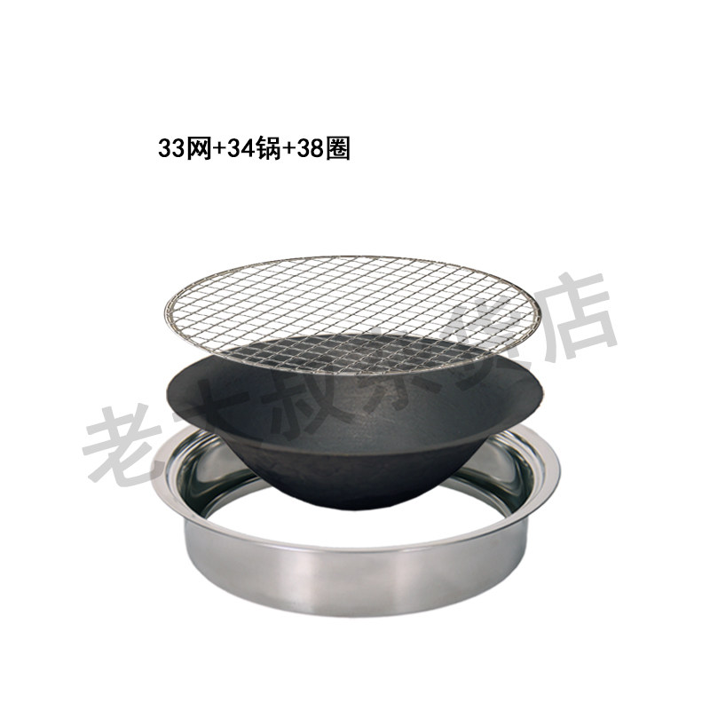 中老式围炉煮茶生铸铁锅炭盆烤网不锈钢下沉圈套装