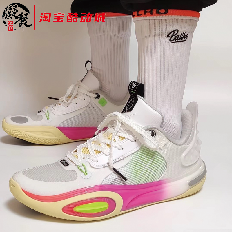 凝聚体育LiNing李宁 全城11 白粉色 低帮防滑实战篮球鞋ABAT005-4
