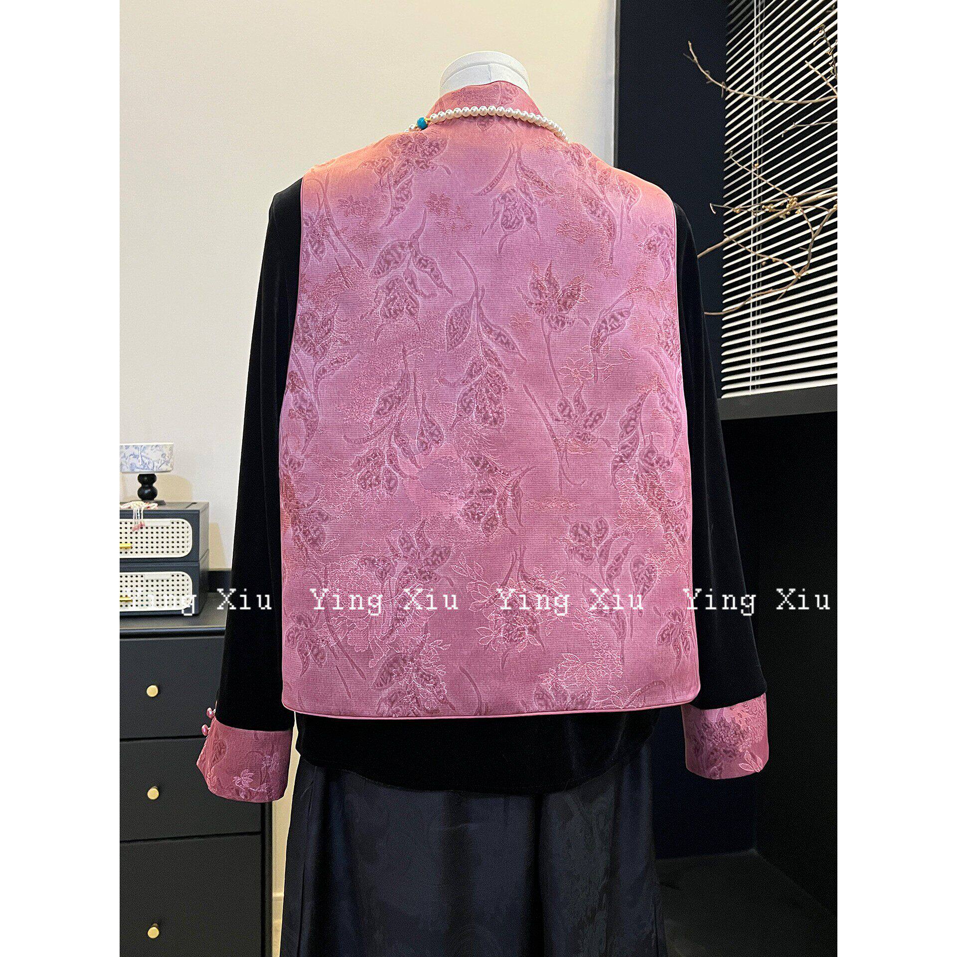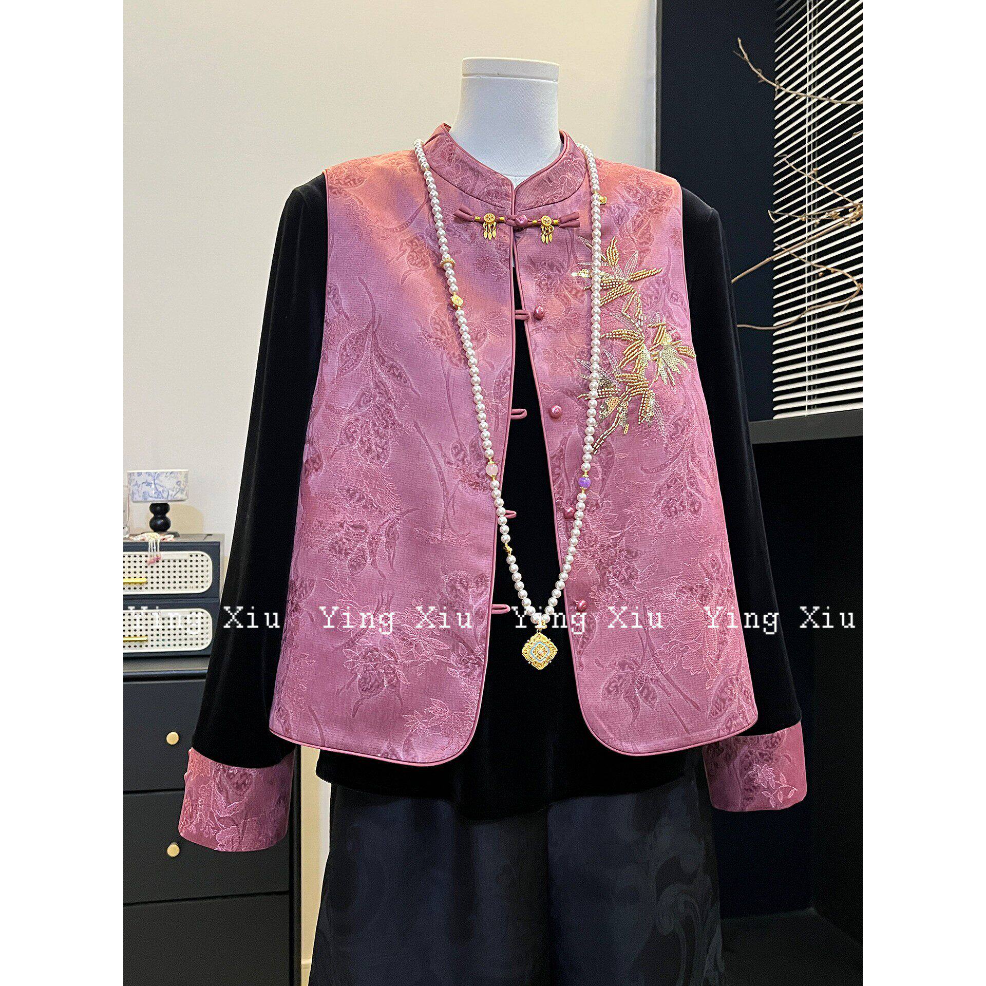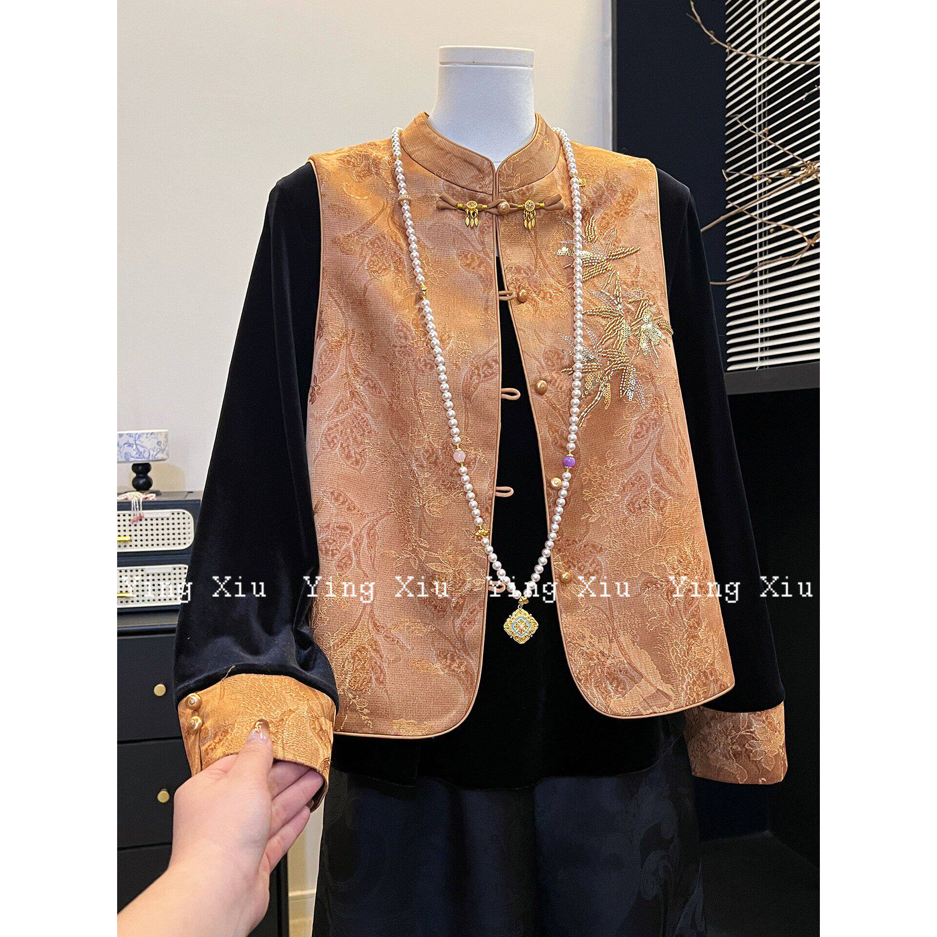 妈妈装新中式刺绣丝绒马甲套装