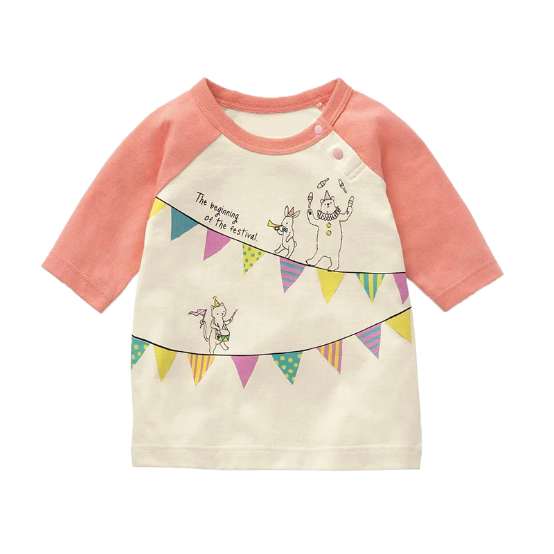 日系新款童装春秋季儿童七分袖t恤男女童纯棉打底衫宝宝卡通上衣T