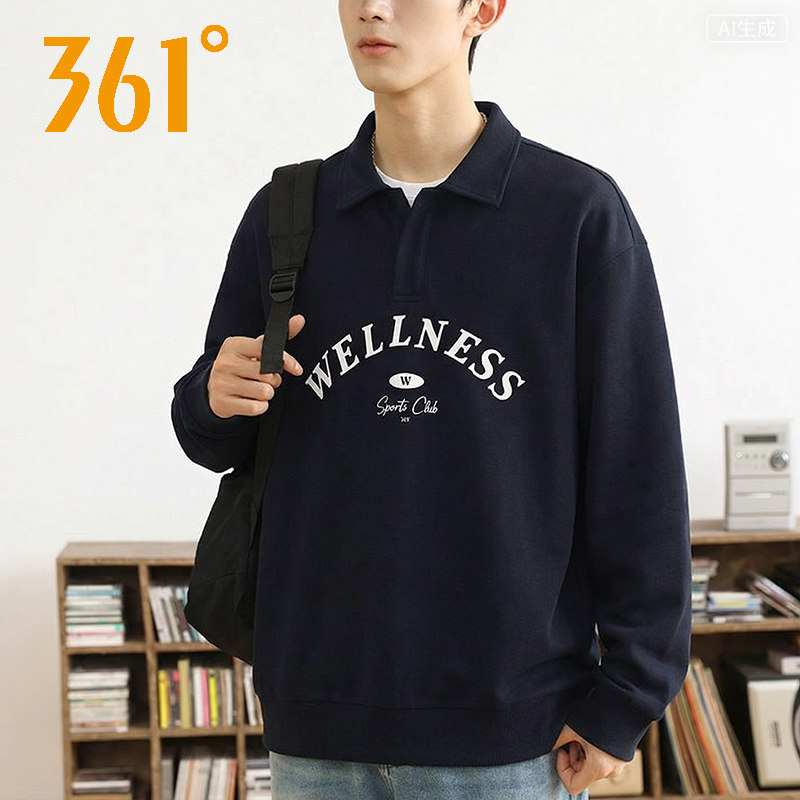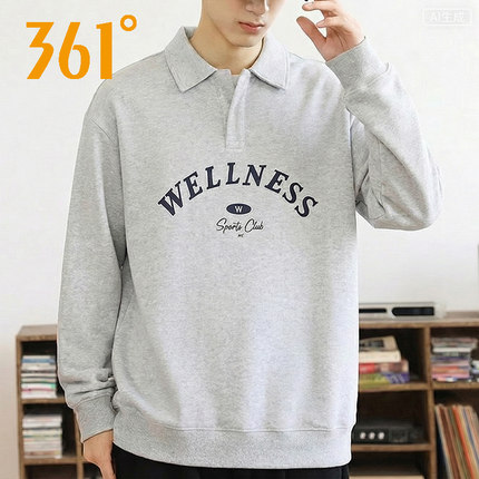 361°翻领卫衣男2026春季长袖运动休闲百搭印花上衣552544007A