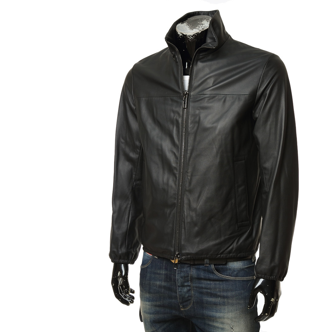 Armani/阿玛尼EA 秋冬款男士立领真皮夹克外套皮衣 01R55P 01P54
