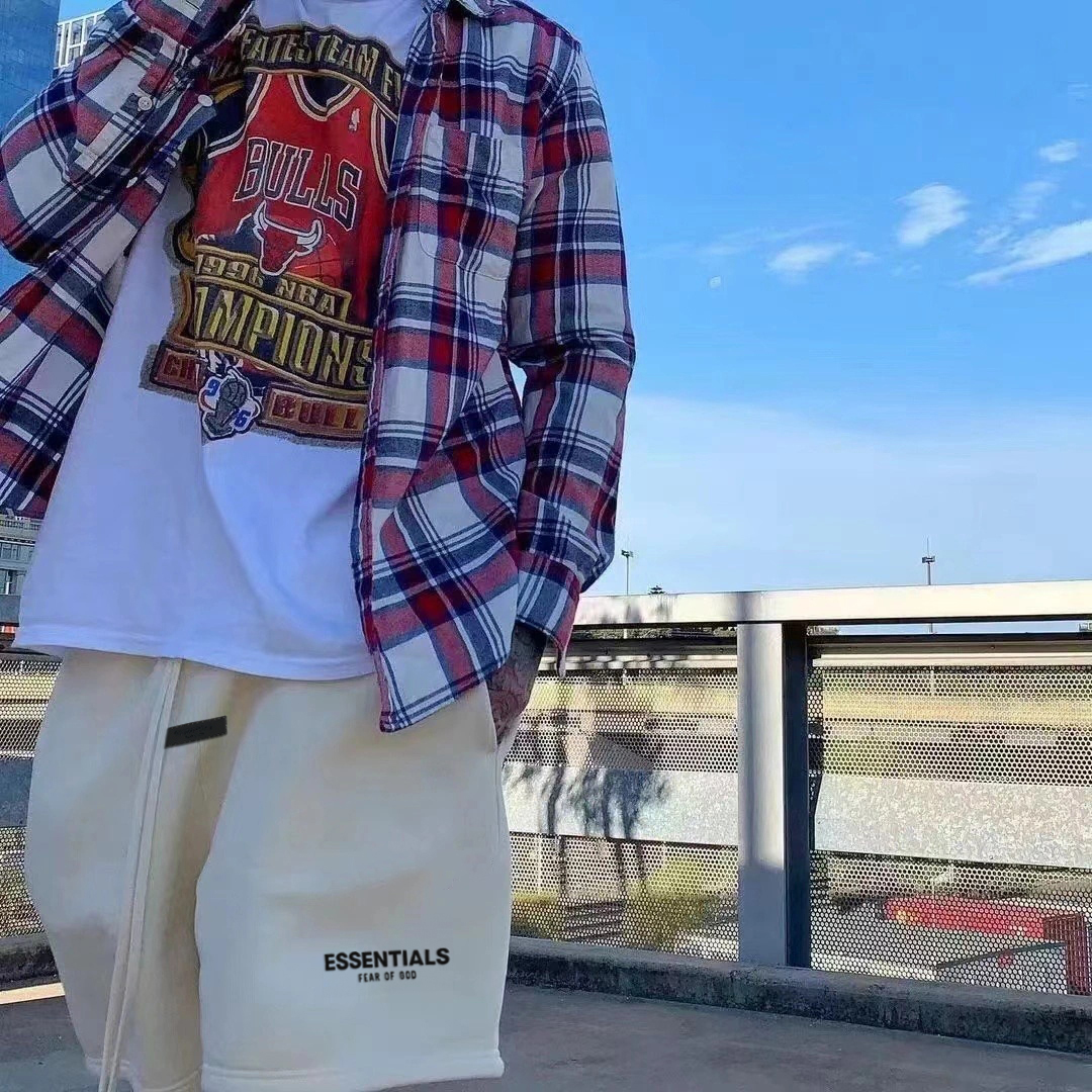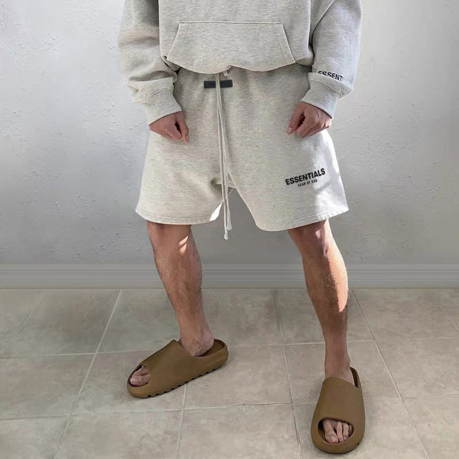 植绒字母ESSENTLAIS FOGESS2025夏外穿短裤男美式潮牌5分裤子高街