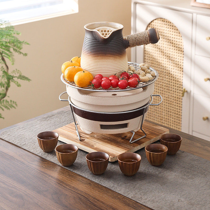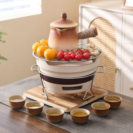 围炉煮茶家用室内老式炭炉家用打边炉泥碳炉户外烧烤陶土烤茶装备
