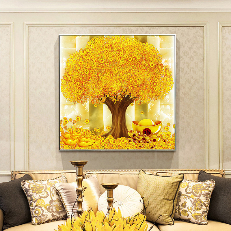 5d钻石画客厅满钻发财树简约现代自己手工小件贴钻十字绣2025新款