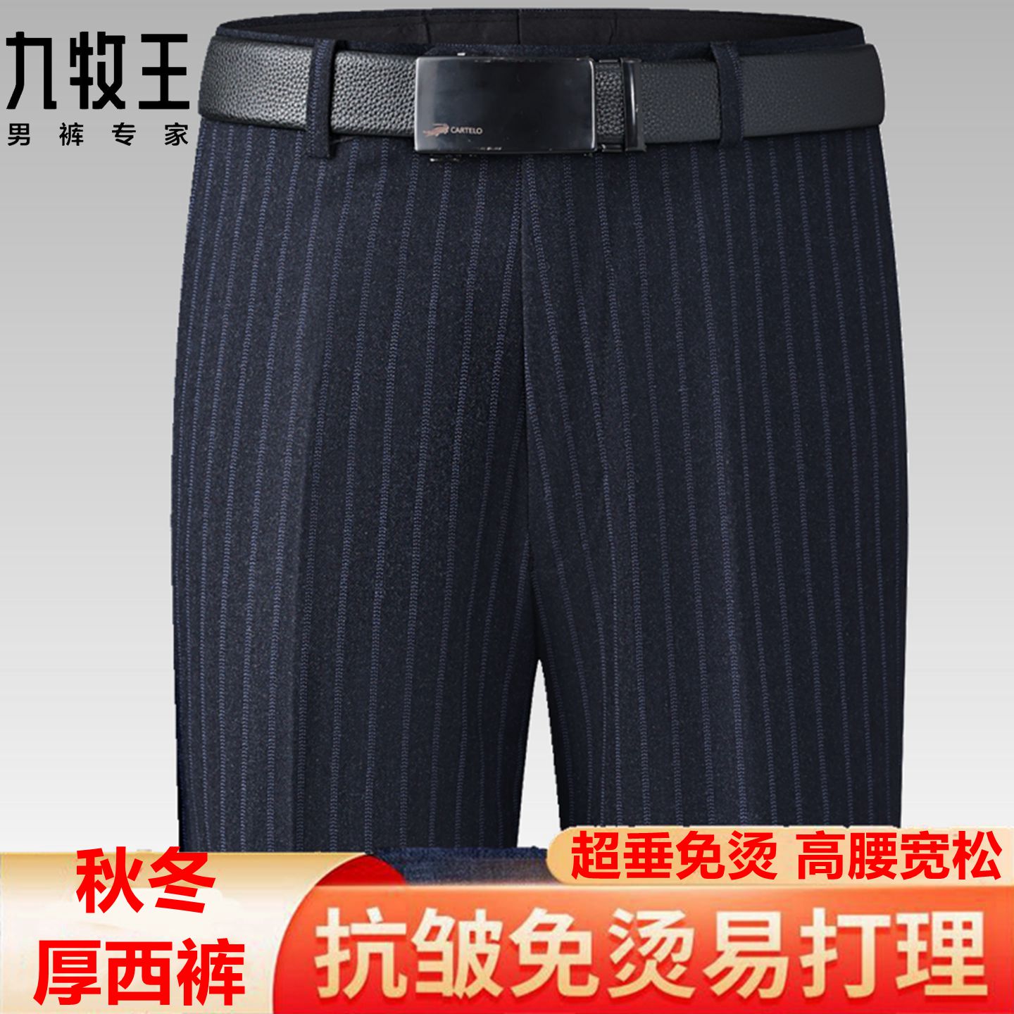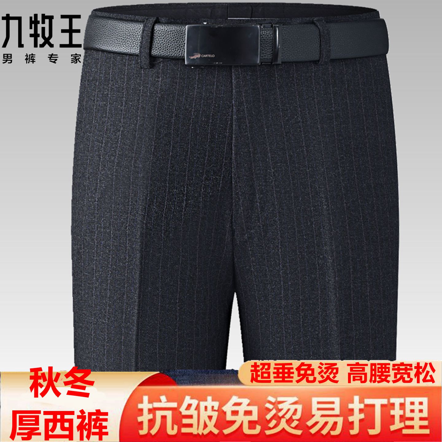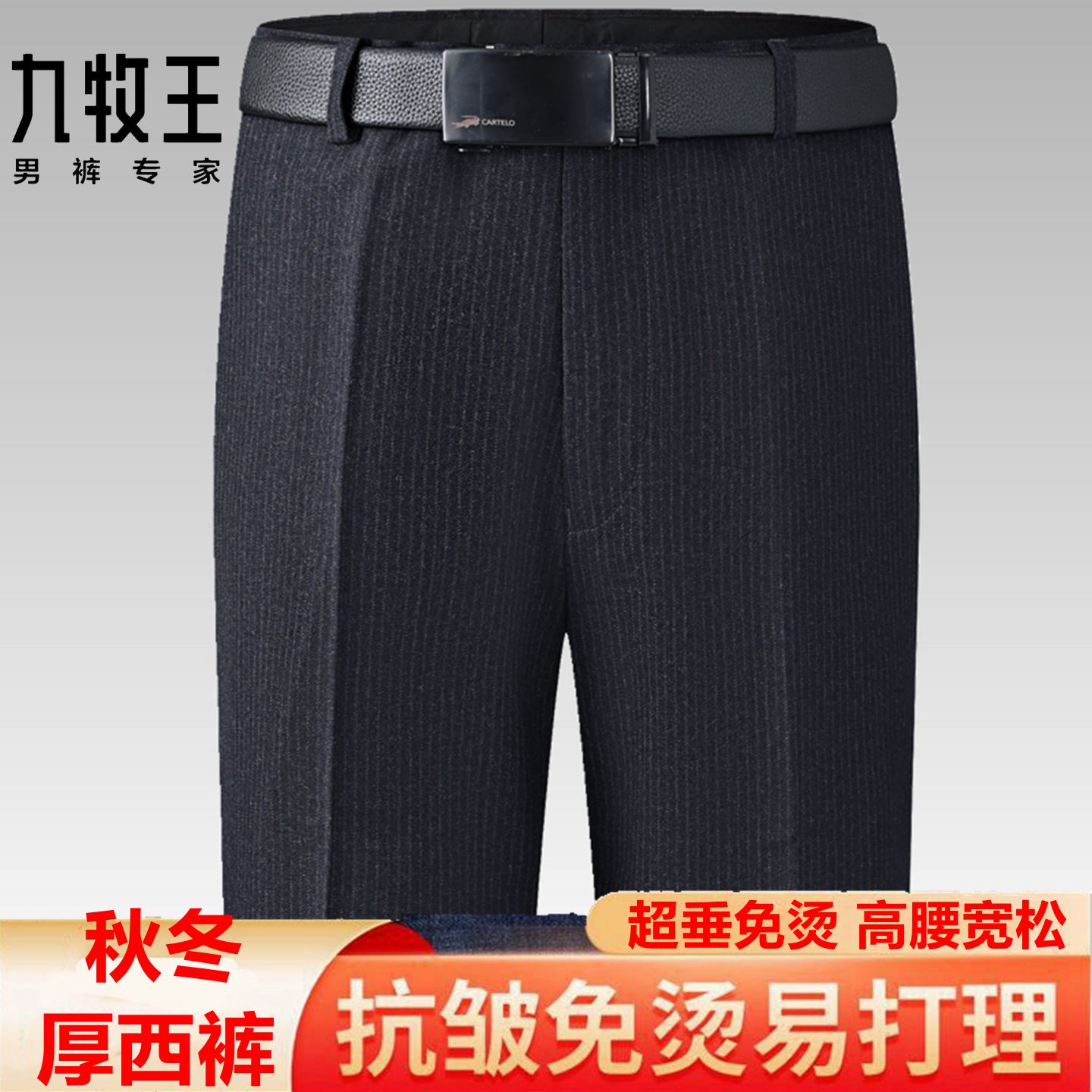 九牧王西裤男中老年秋冬厚款直筒宽松男裤高腰抗皱免烫休闲长裤子
