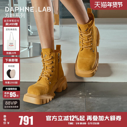 NAME同款DAPHNE LAB方糖复古大黄靴户外机能厚底马丁靴女