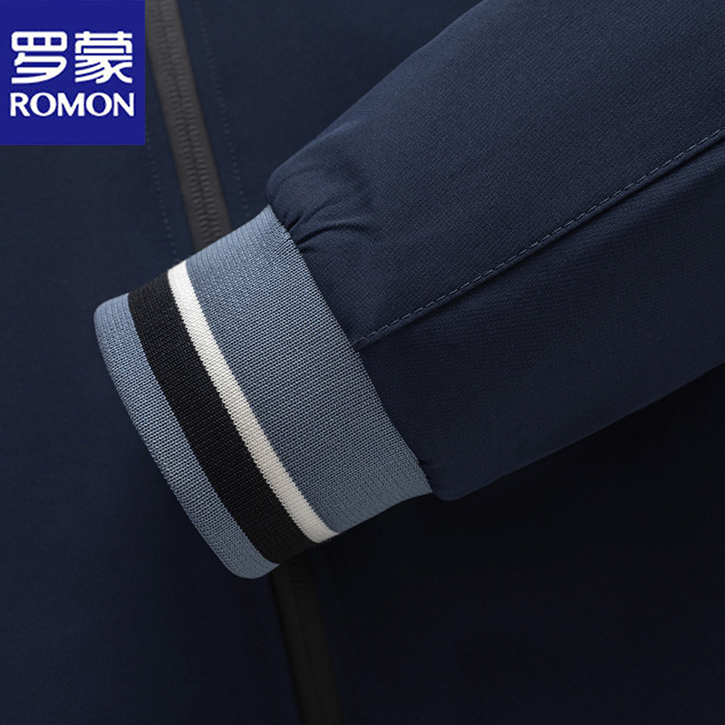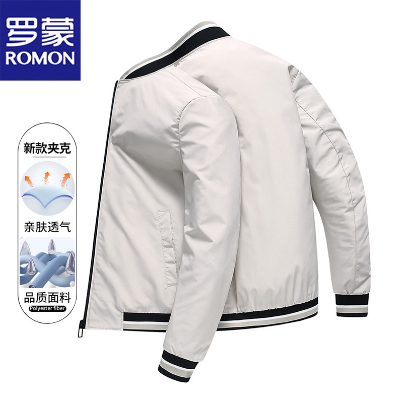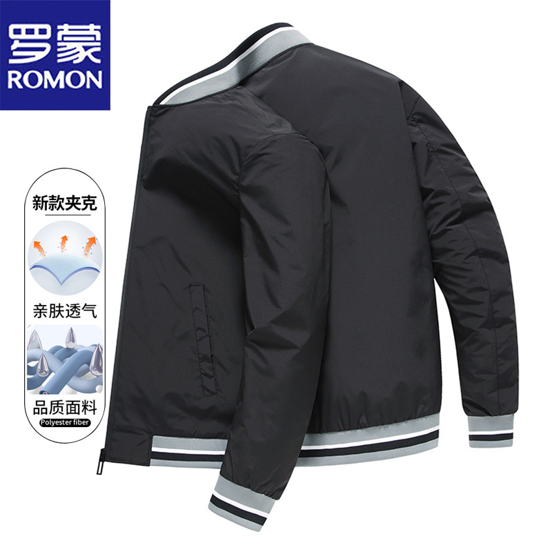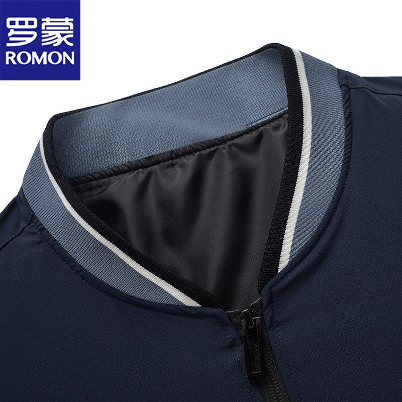 罗蒙春秋季新款夹克男士高级棒球服上衣商务休闲亲肤条纹外套男装