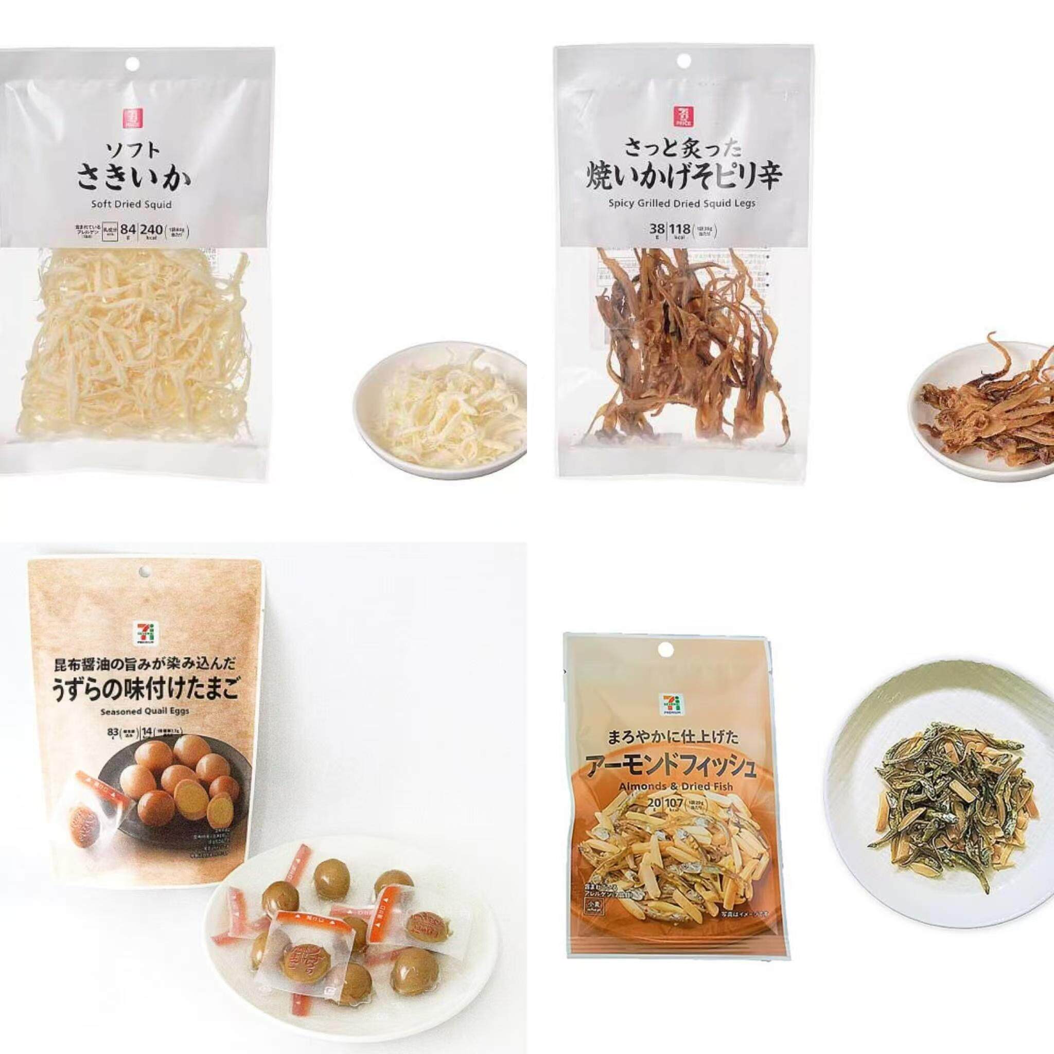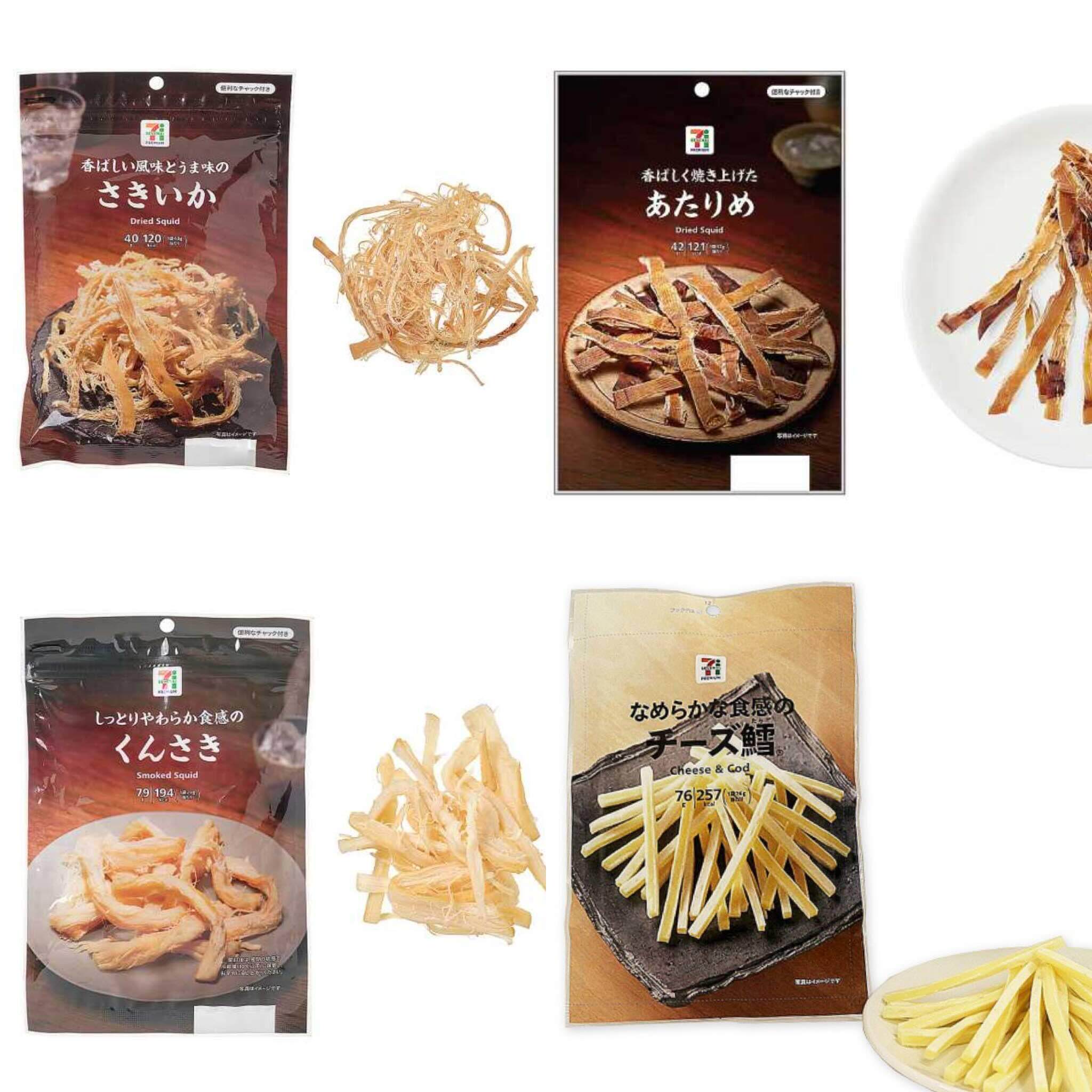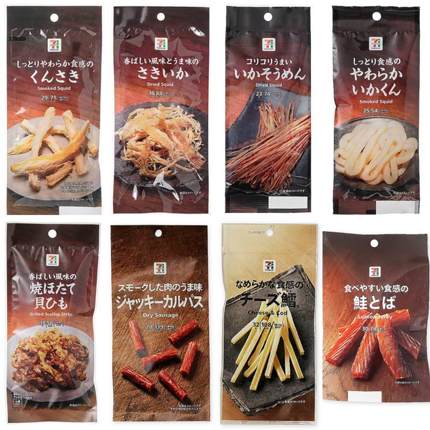 日本直邮711鱿鱼丝三文鱼干扇贝须香肠鳕鱼便利店零食即食下酒菜