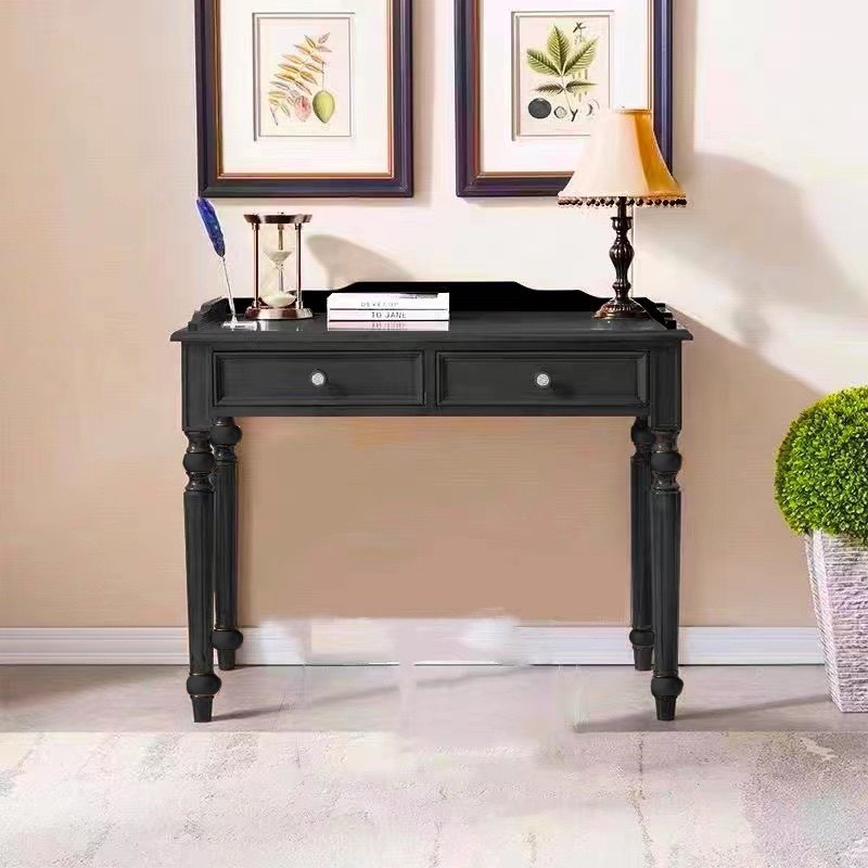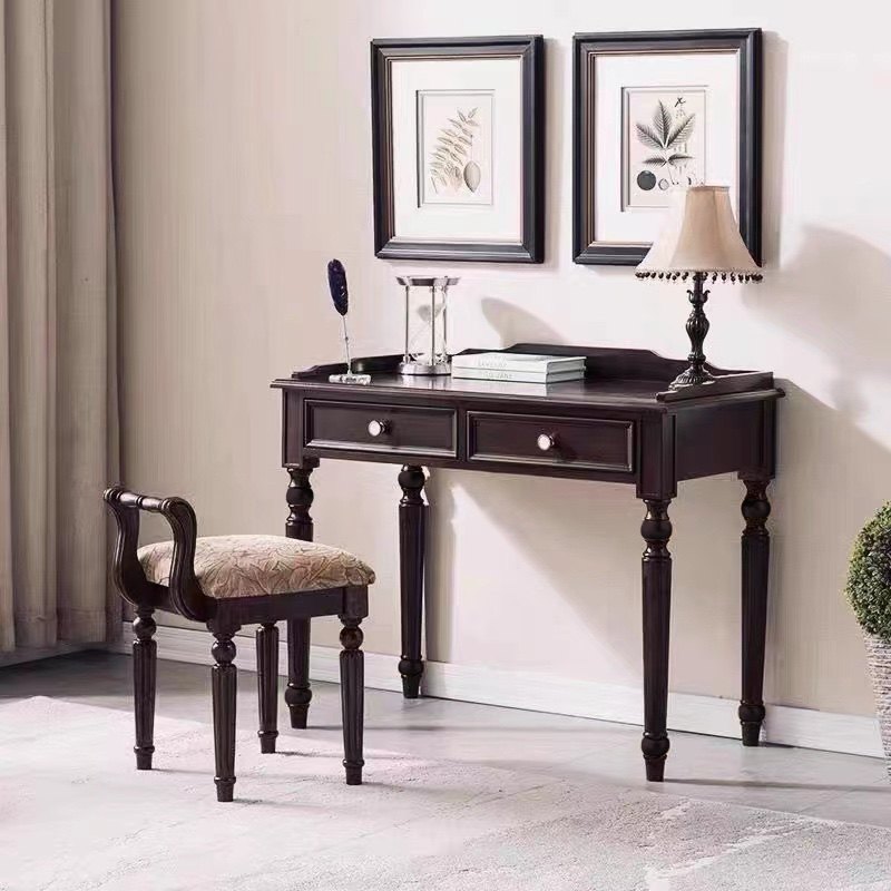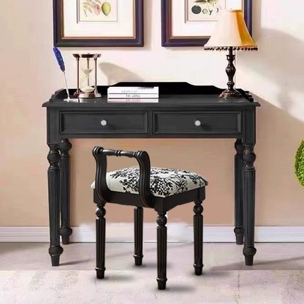 黑色书桌美式全实木家用书房卧室欧式法式复古小户型电脑桌写字桌