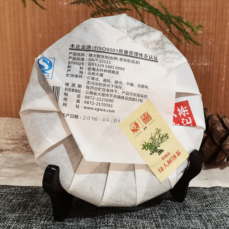 云南茶叶普洱生茶下关沱茶特制品泡饼 2016年绿大树357g普洱茶饼