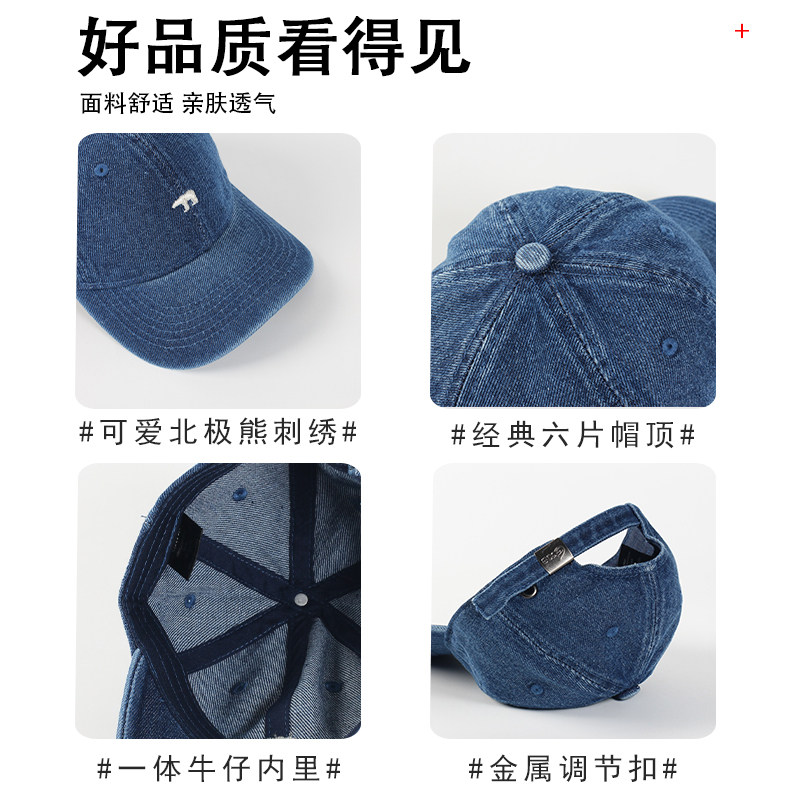 儿童水洗牛仔帽子女春夏可爱北极熊刺绣棒球帽男童宝宝遮阳鸭舌帽