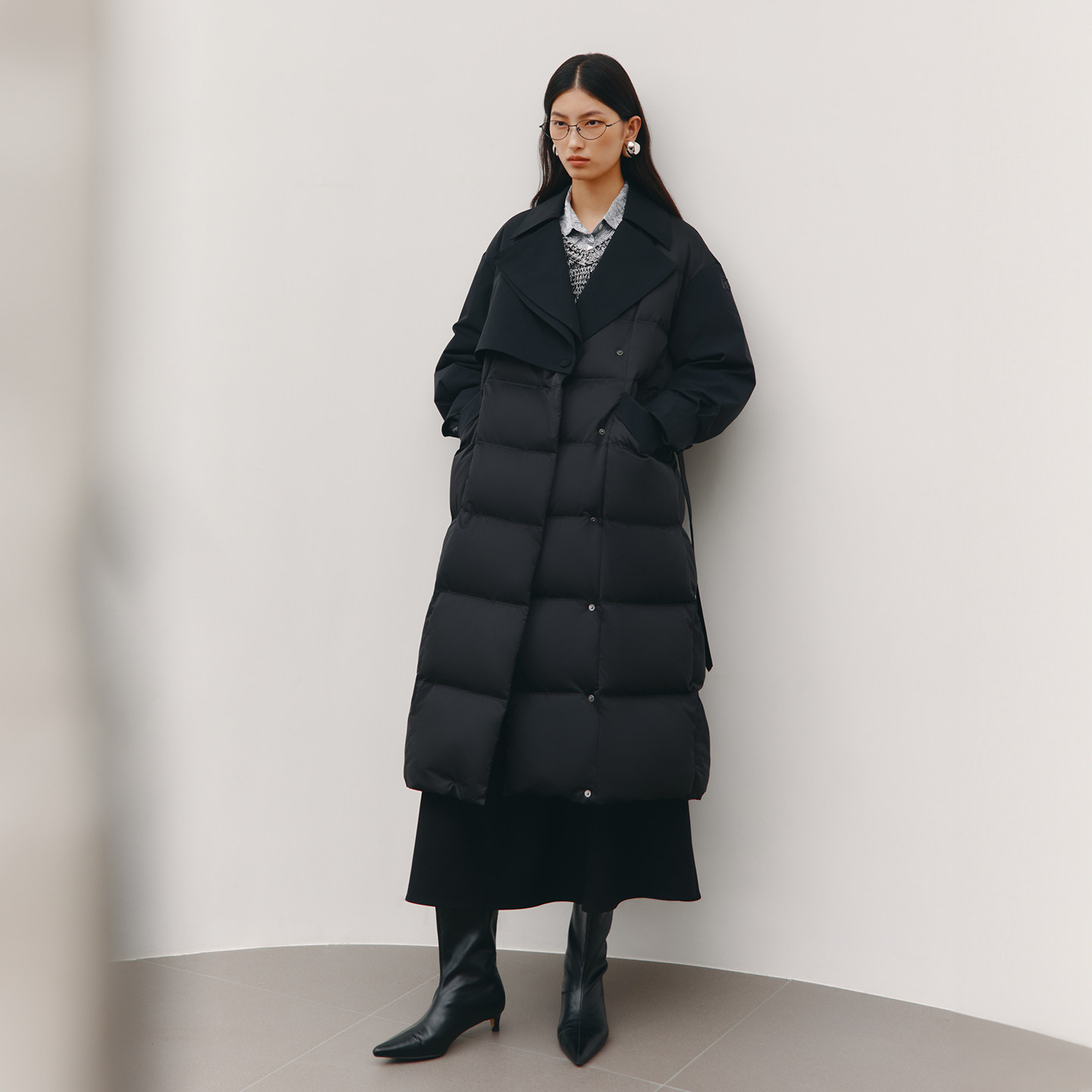 【御风系列】艾莱依鹅绒服女2025冬季新款风衣显瘦长款加厚羽绒服