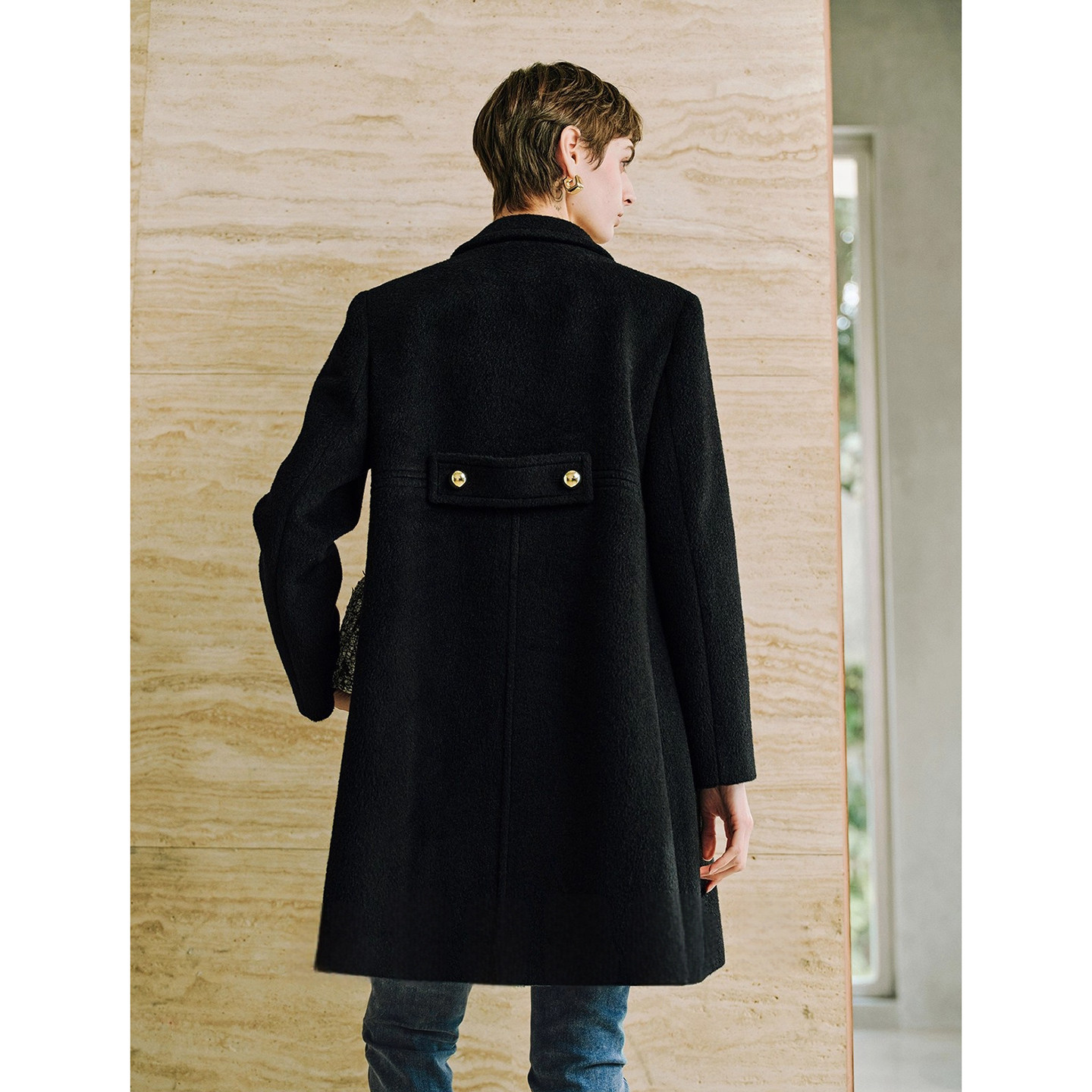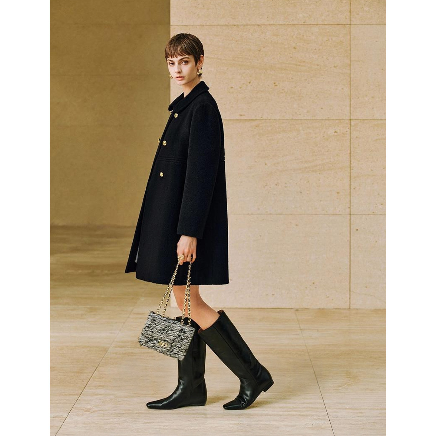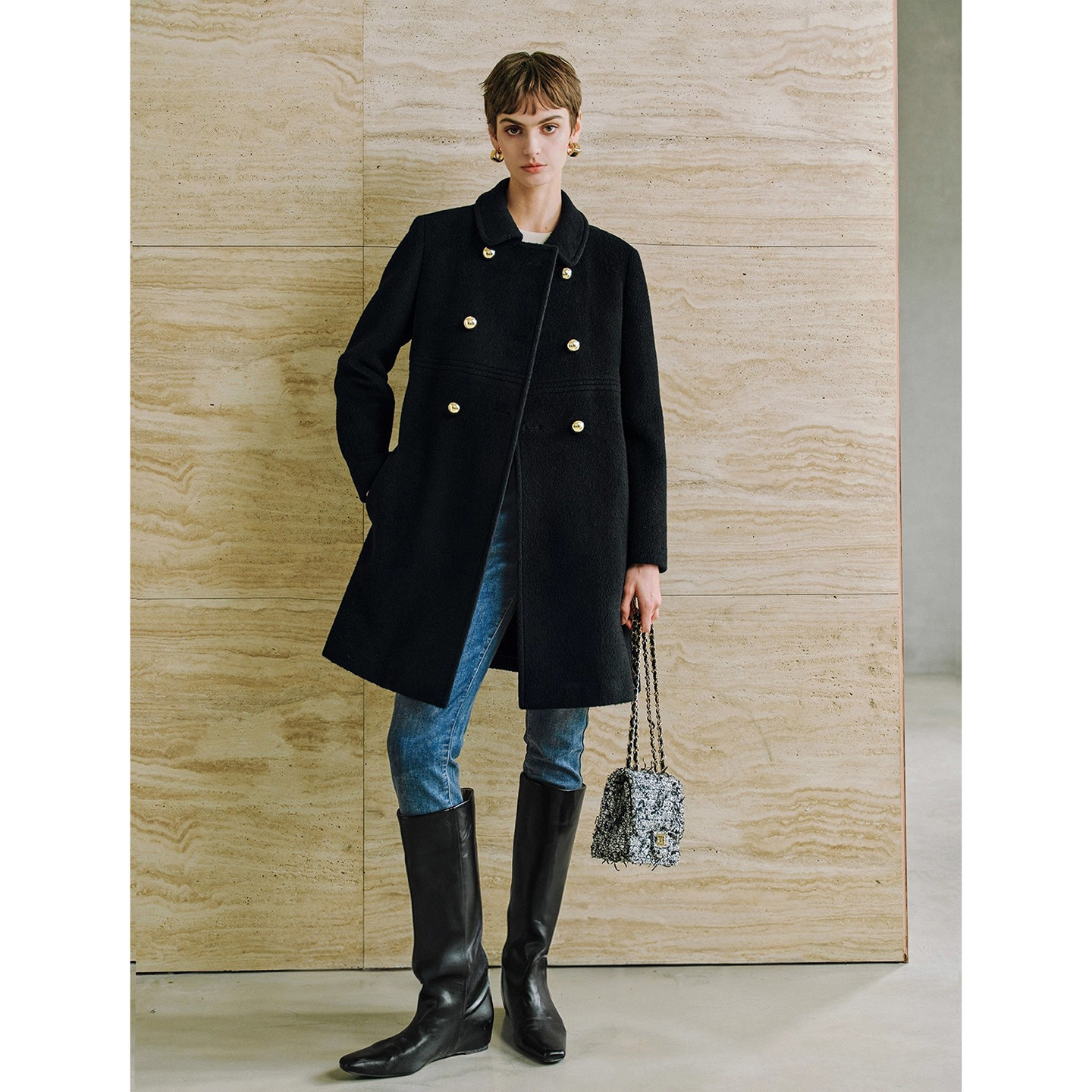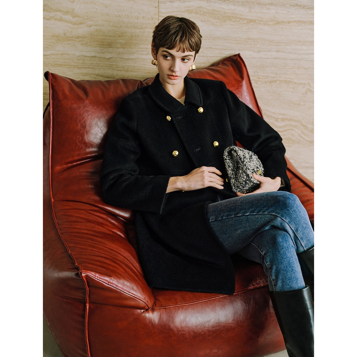双排扣羊绒大衣女款冬装高级黑色显瘦气质保暖翻领中长款毛呢外套