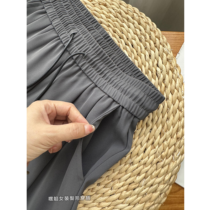 【冰冰裤】高级垂感松紧高腰西装裤女宽松显瘦休闲抽绳纯色直筒裤