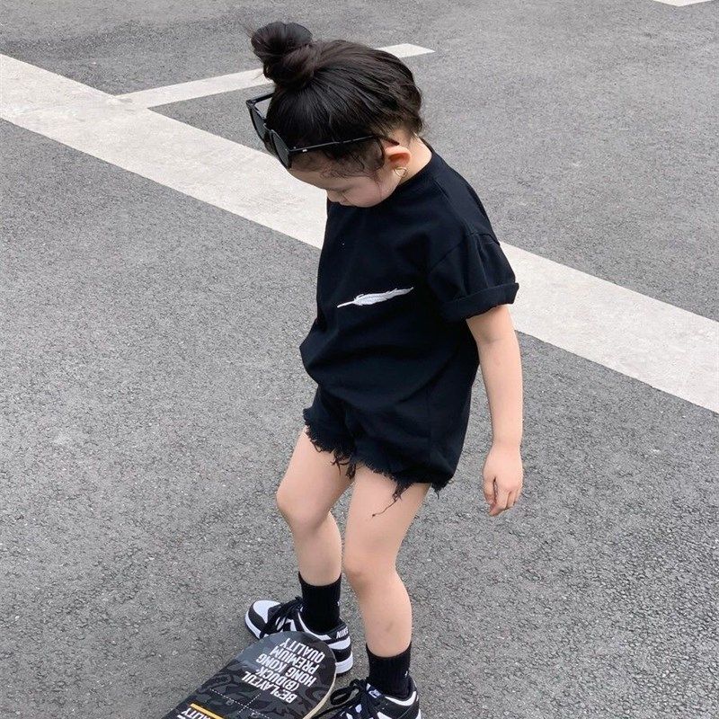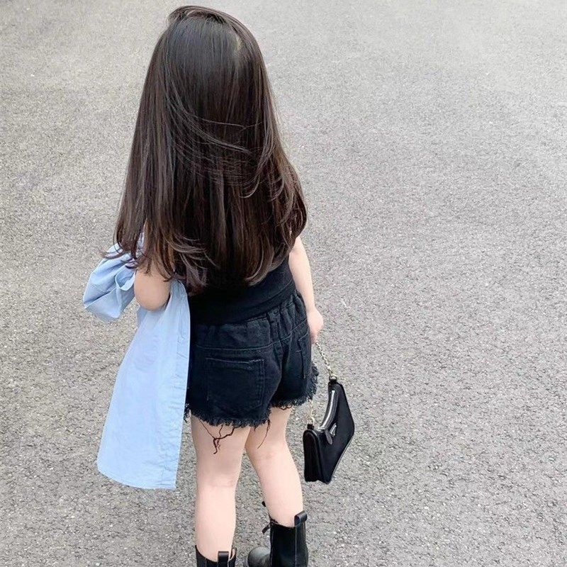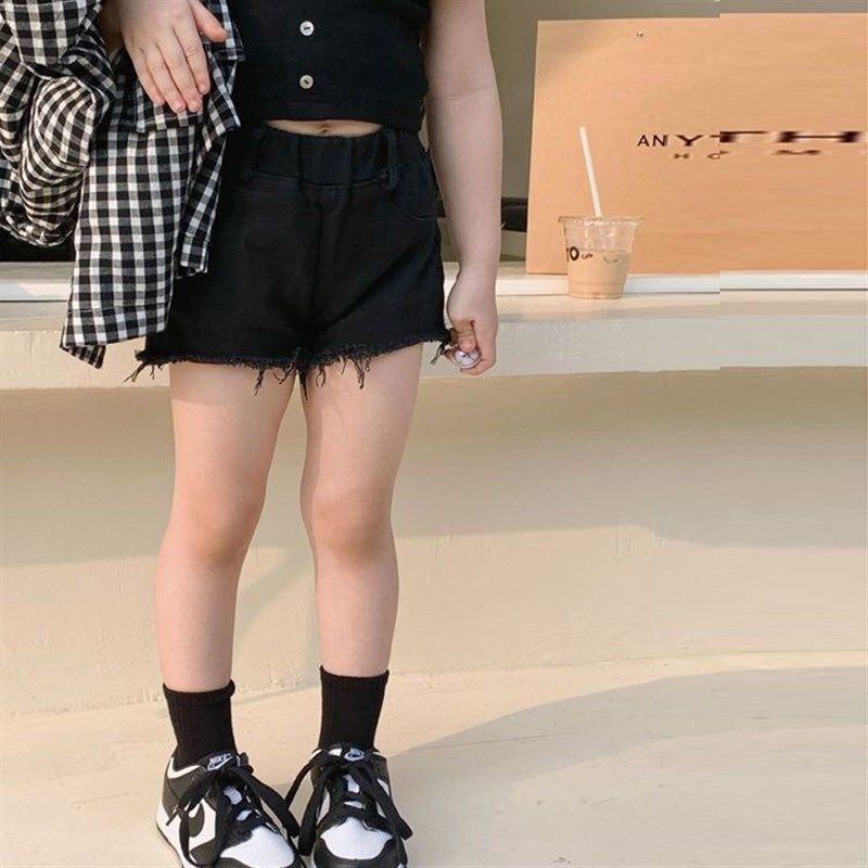 女童黑色牛仔短裤2023新款夏装薄款毛边短裤5岁宝宝松紧腰裤子潮