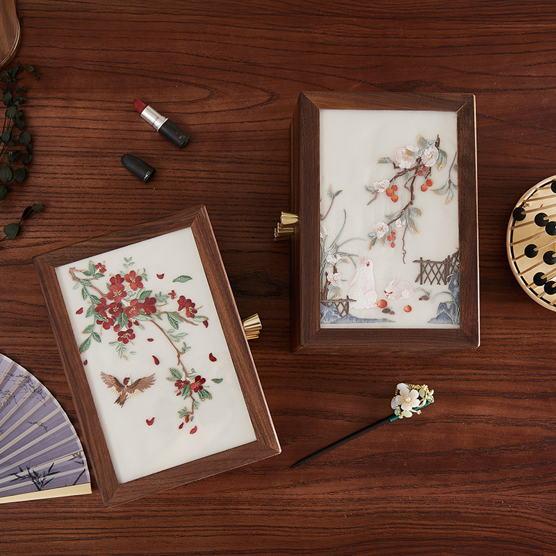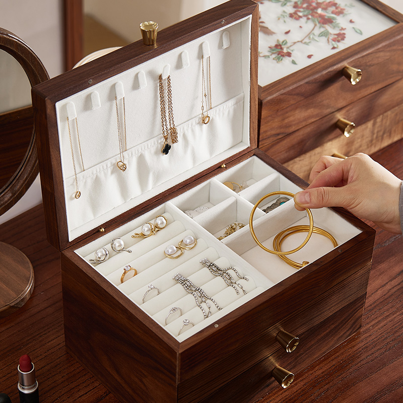 黑胡桃实木刺绣首饰收纳盒高档精致中式珠宝戒指盒订婚礼物饰品盒