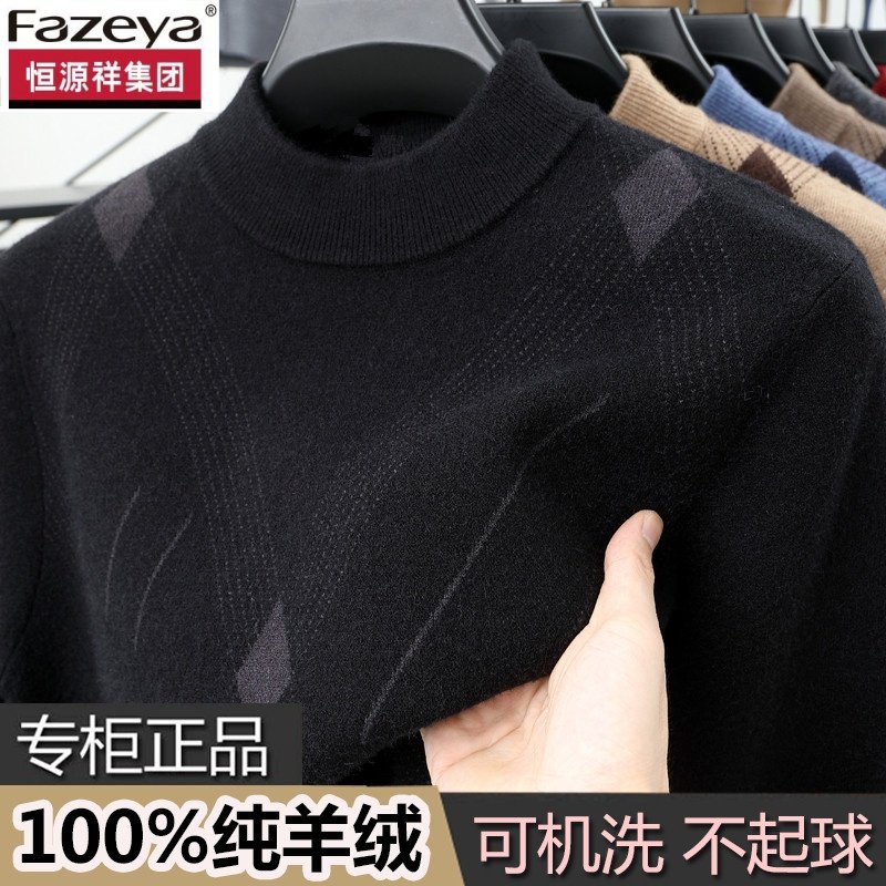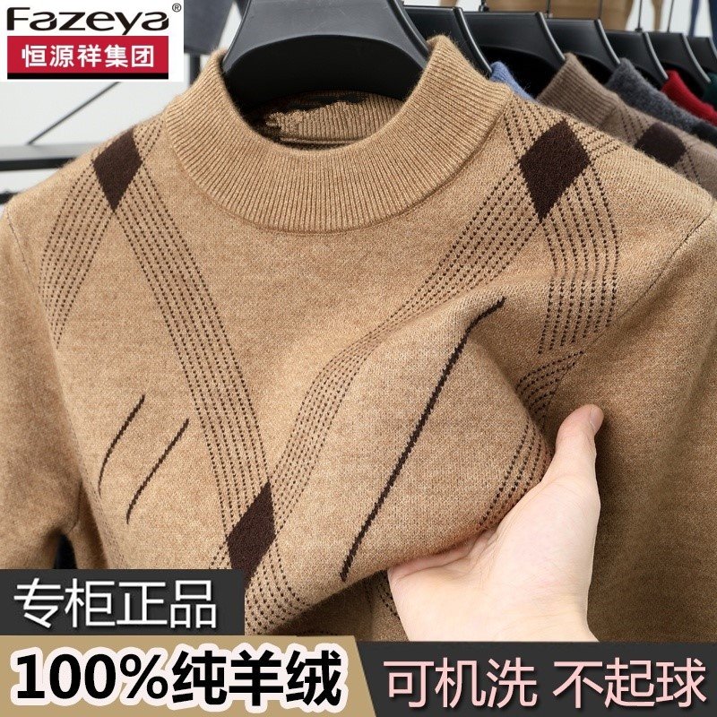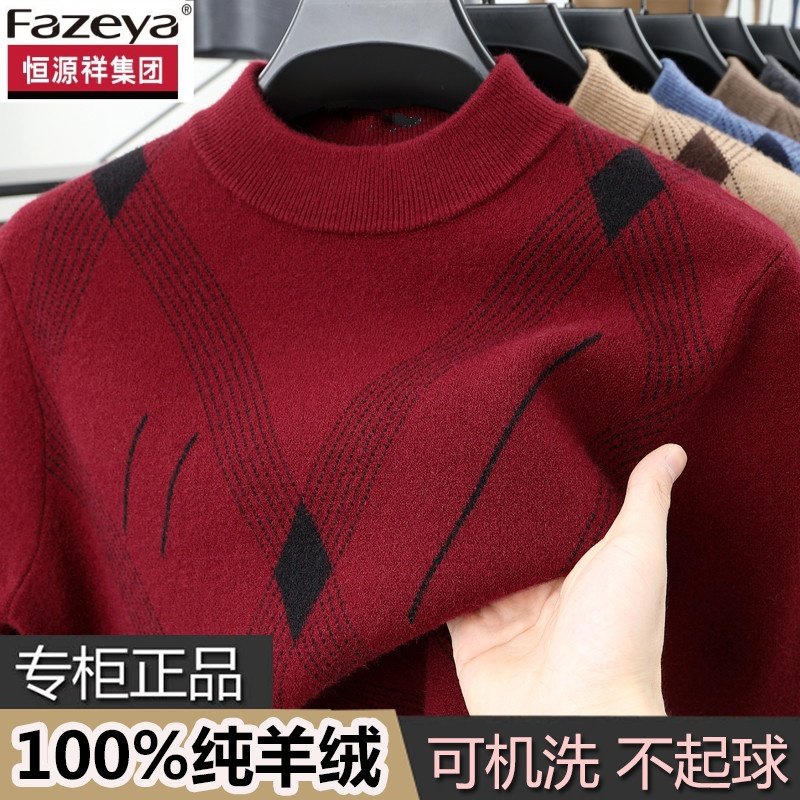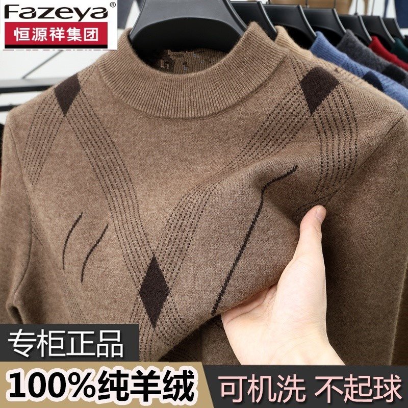 恒源祥集团彩羊冬季半高领羊绒衫男士新款套头加厚爸爸装打底毛衣