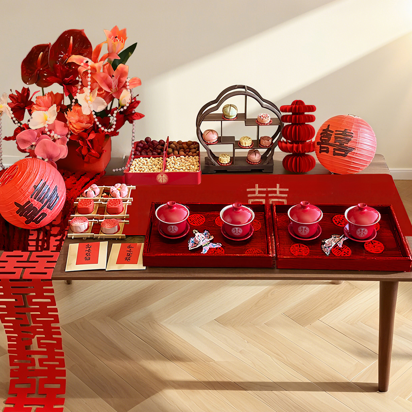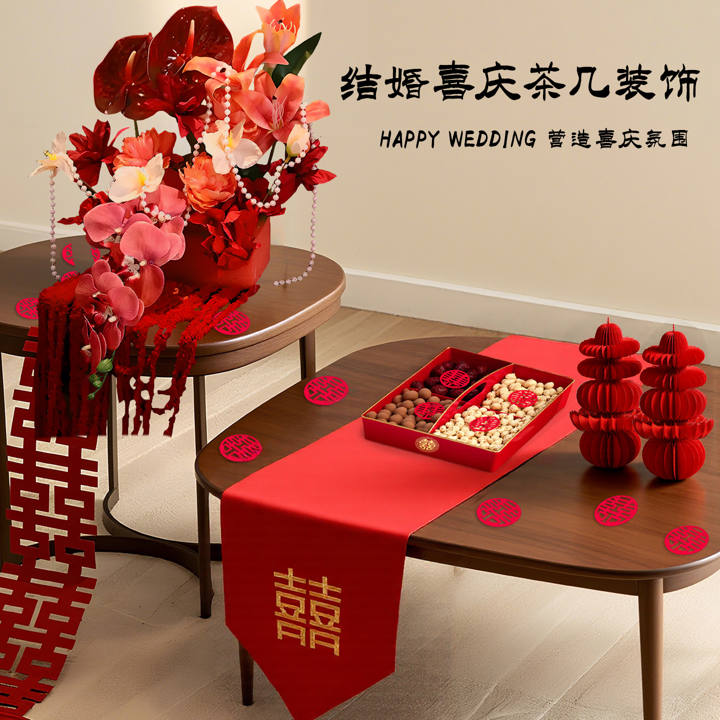 婚房布置结婚茶几套装客厅摆件装饰敬茶桌男方女方酒店订婚宴全套