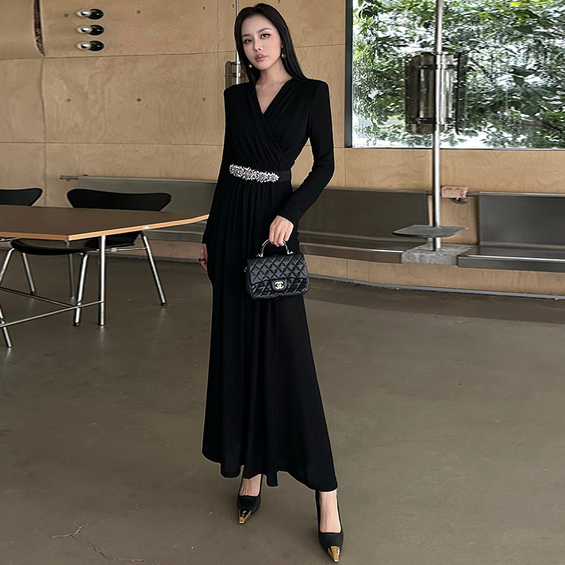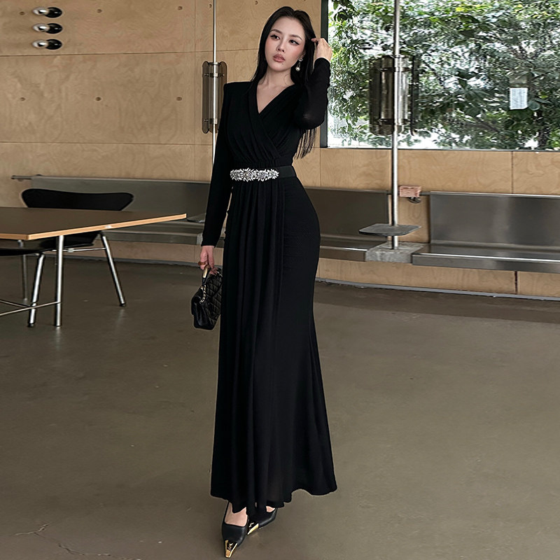 法式修身显瘦气质包臀收腰长袖连衣裙女秋冬新款针织高弹力鱼尾裙
