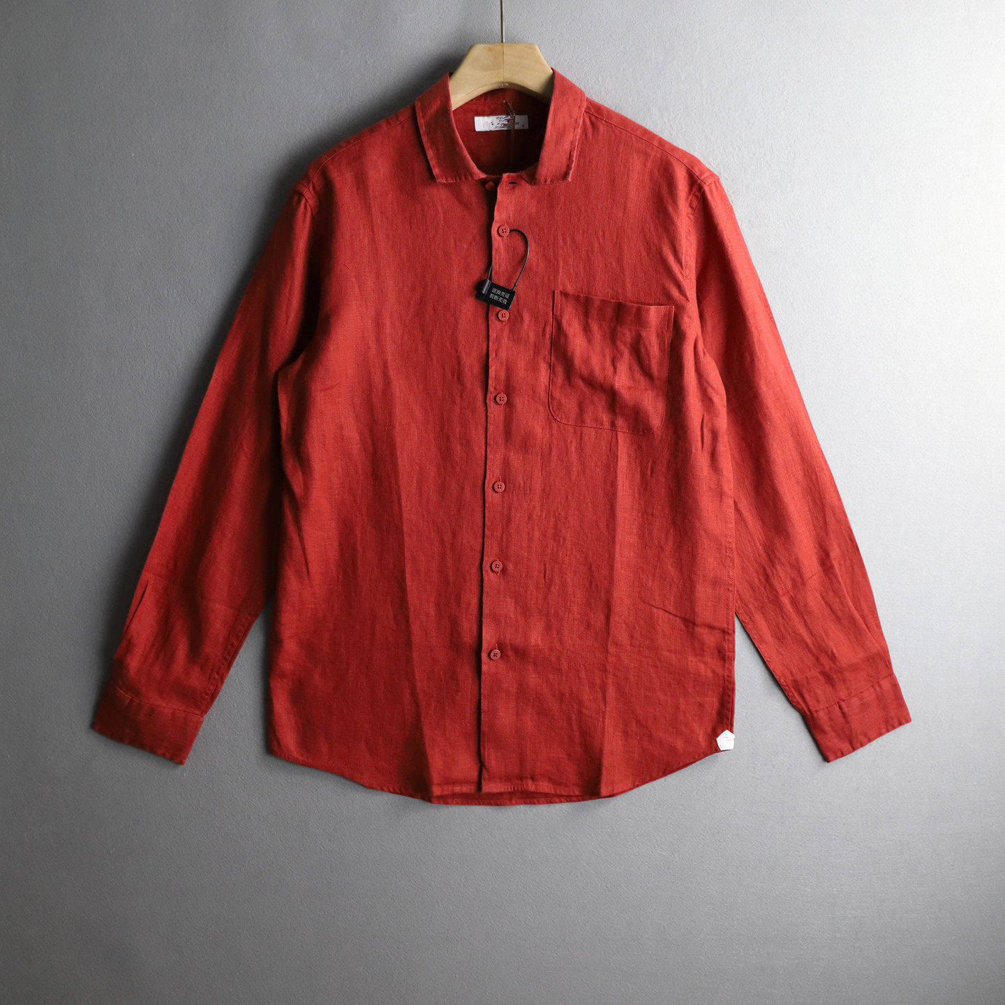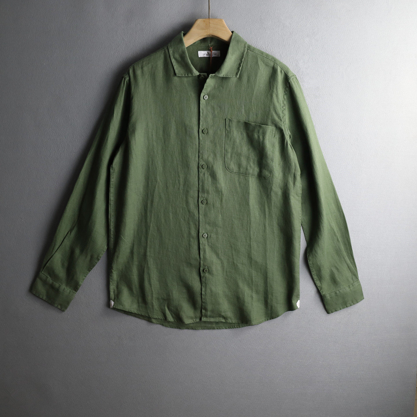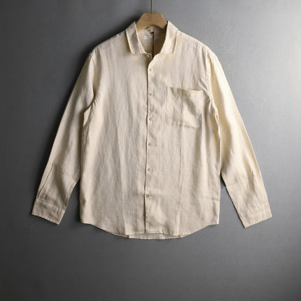 优外汇 欧美L家原货四季款纯色口袋高端亚麻男士翻领奢华长袖衬衫
