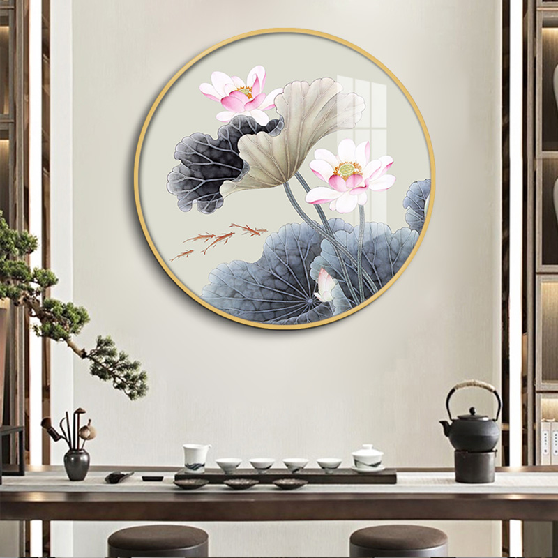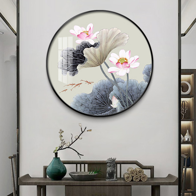 入户玄关挂画新中式装饰画客厅卧室走廊餐厅墙面装饰荷花圆形壁画