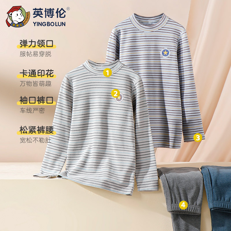 英博伦儿童德绒保暖内衣男童秋衣秋裤套装发热冬季加厚中大童睡衣