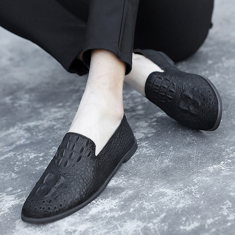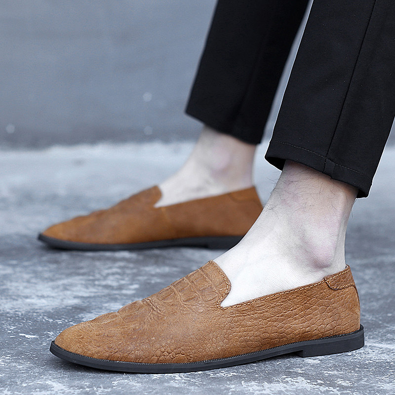 尖头休闲男皮鞋2025新款轻便软低真皮小码时尚潮流一脚蹬豆豆鞋男