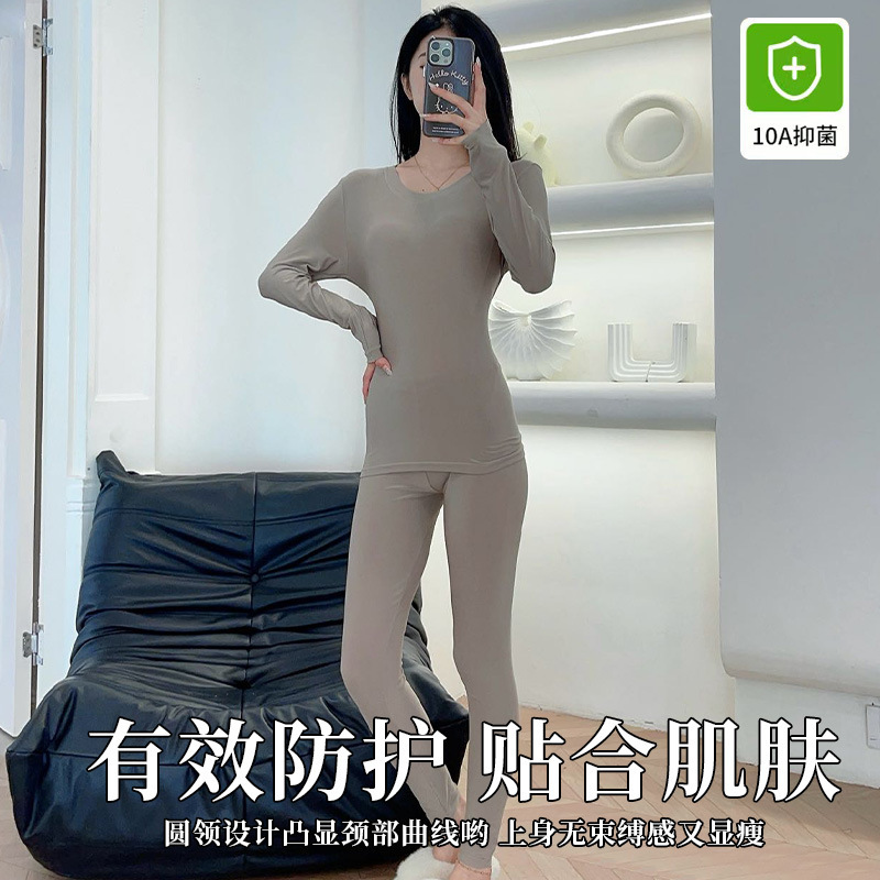 秋衣秋裤 玻色因女款无痕修身显瘦保暖内衣套装加绒加厚 保暖内衣