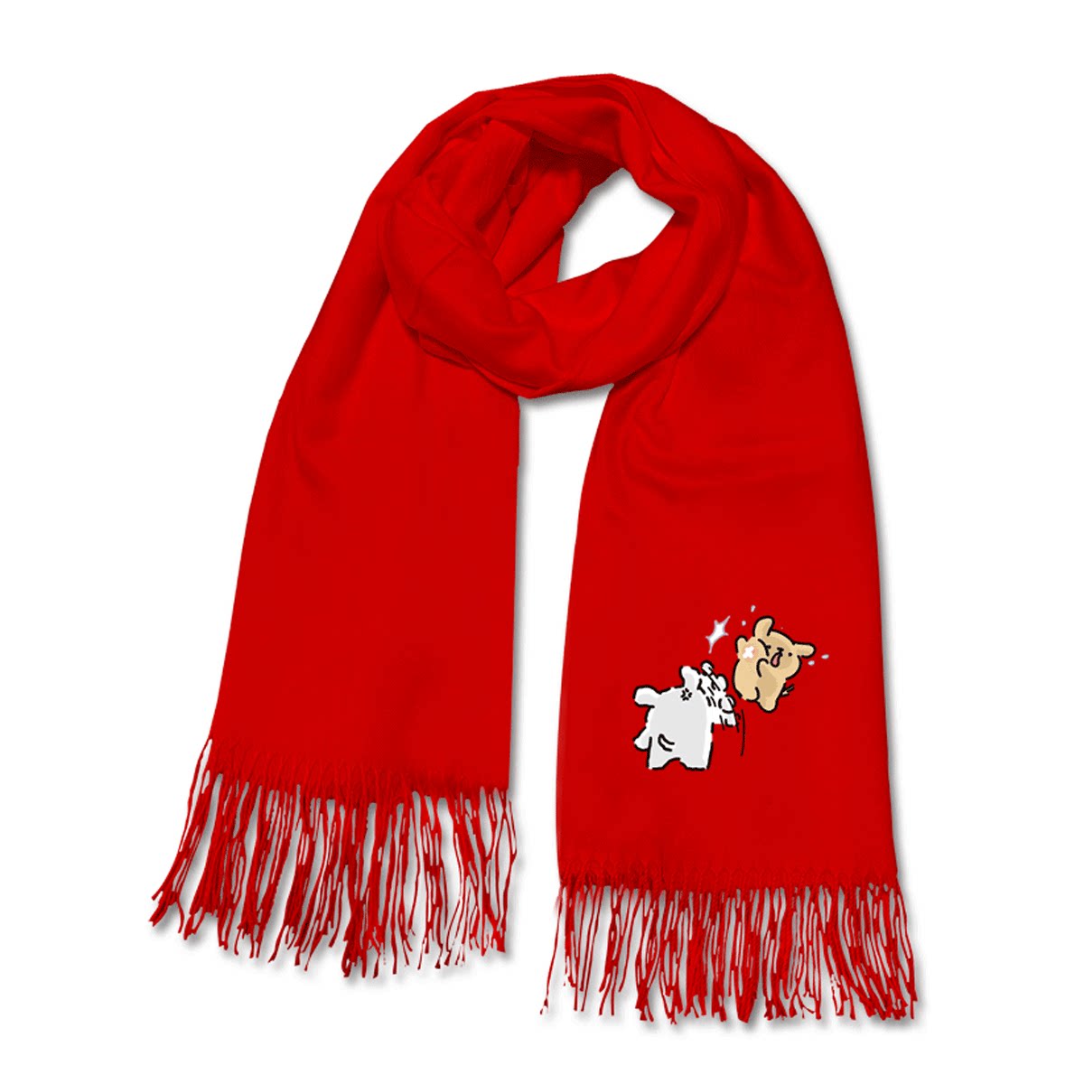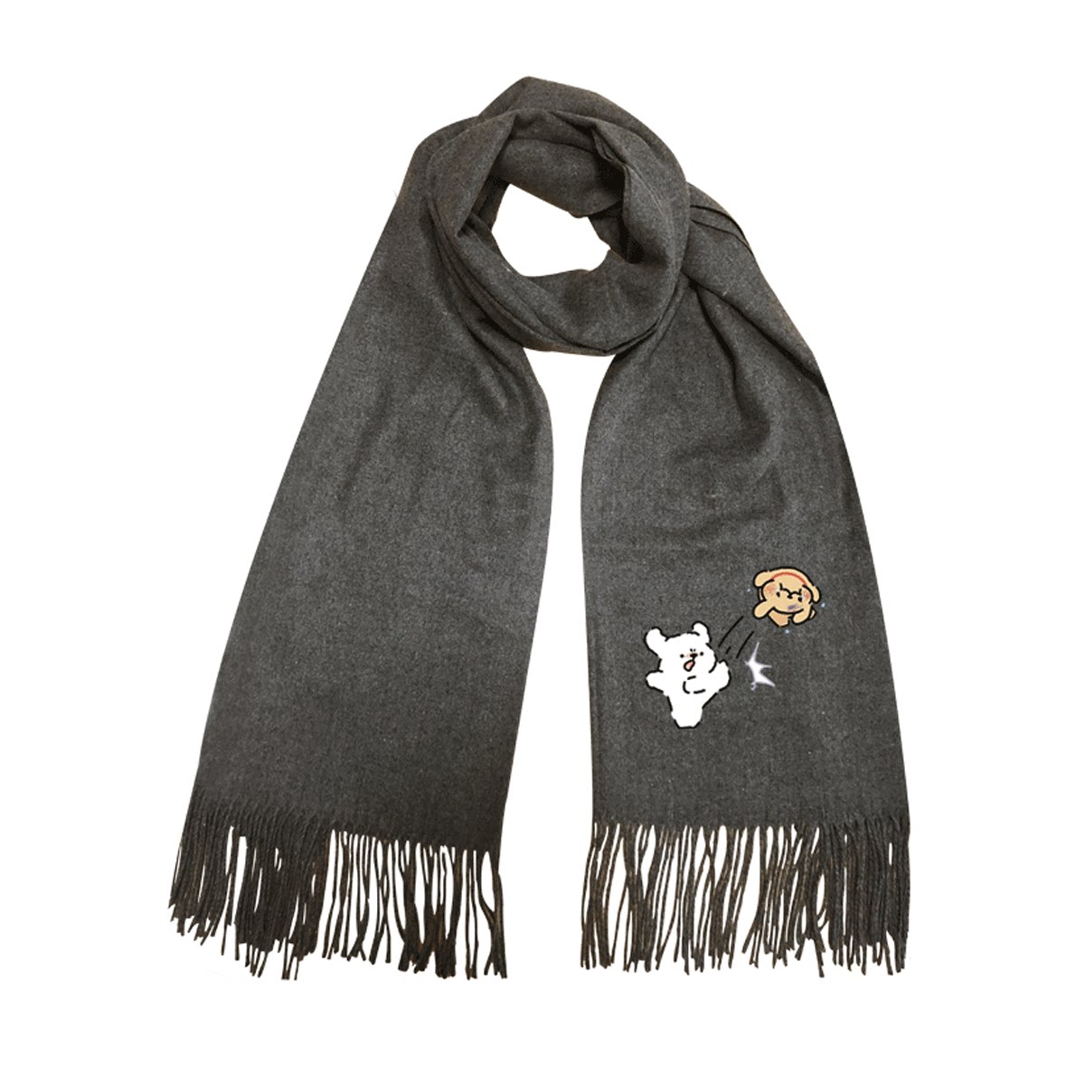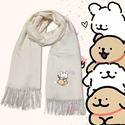 卡通线条小狗卡通印花2024新款休闲男女情侣定制围脖披肩保暖围巾